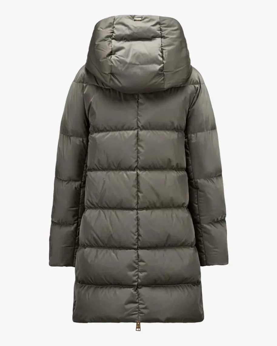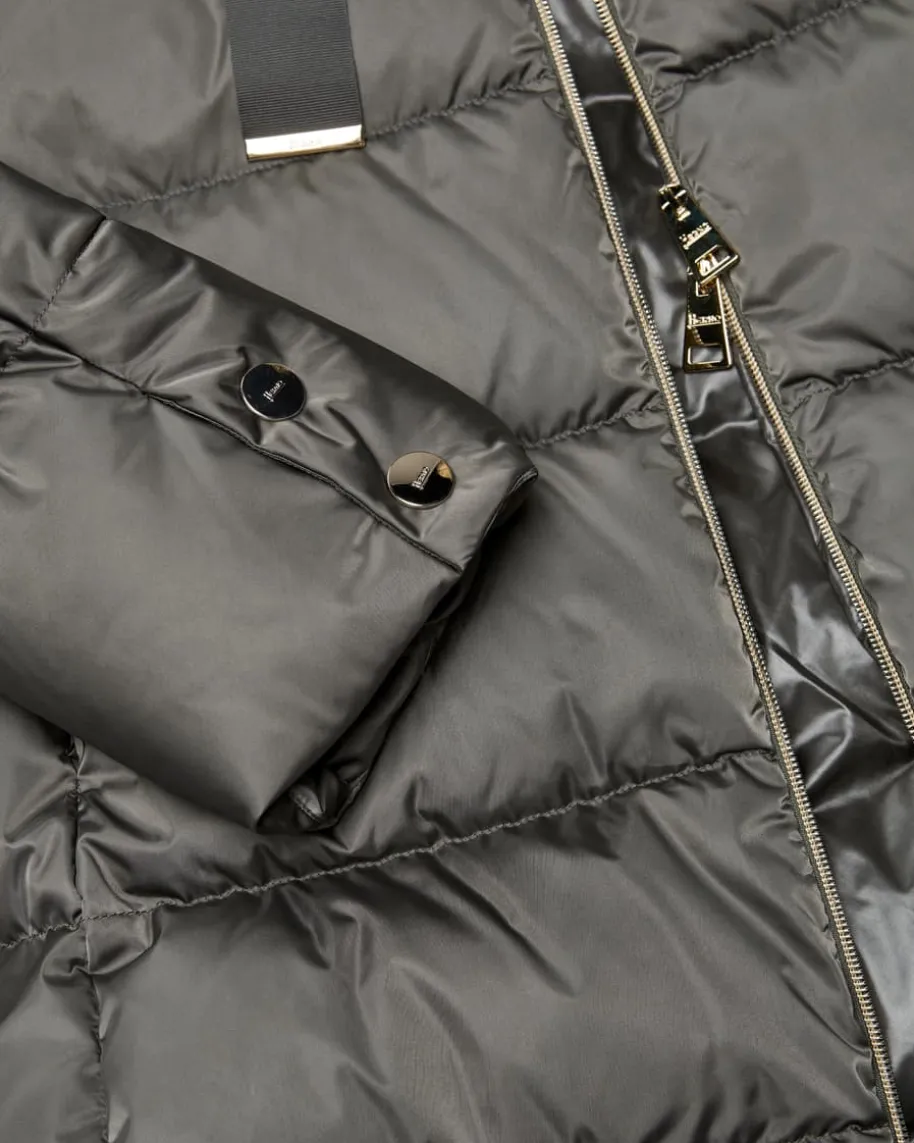 Daunenjacke für Damen von Herno in Graugrün. Das italienischeTraditionsunternehmenentwirft seit vielen Jahren luxuriöse Jacken. Dieses Modell überzeugt nicht nurmodisch mit edlen Details, sondern auch mit hochwertiger Daunenfüllung, die füreine optimale Wärmeisolierung sorgt.
