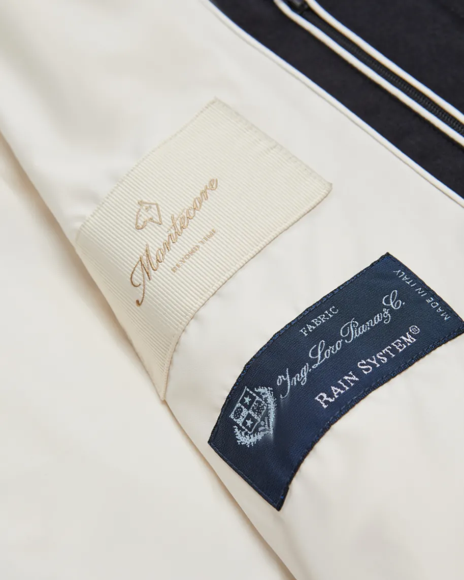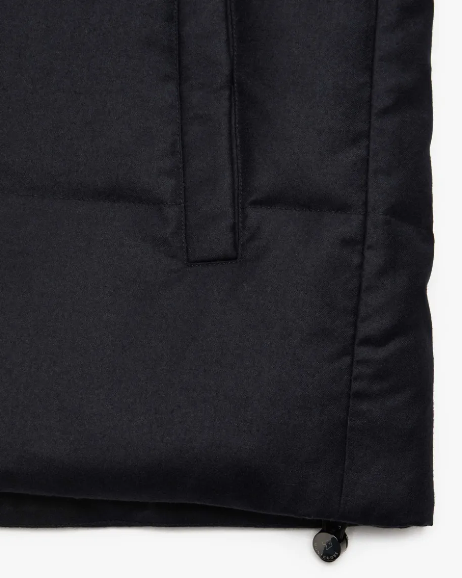 Daunenjacke für Herren von Montecore in Navy. Das Modell punktet dankhochwertigem Schurwoll-Seiden-Mix mit einer angenehmen Haptik, welche durch dasLoro Piana Rain System mit wasser- und windabweisender Eigenschaft punktet – Einfunktionaler Begleiter mit Stil.