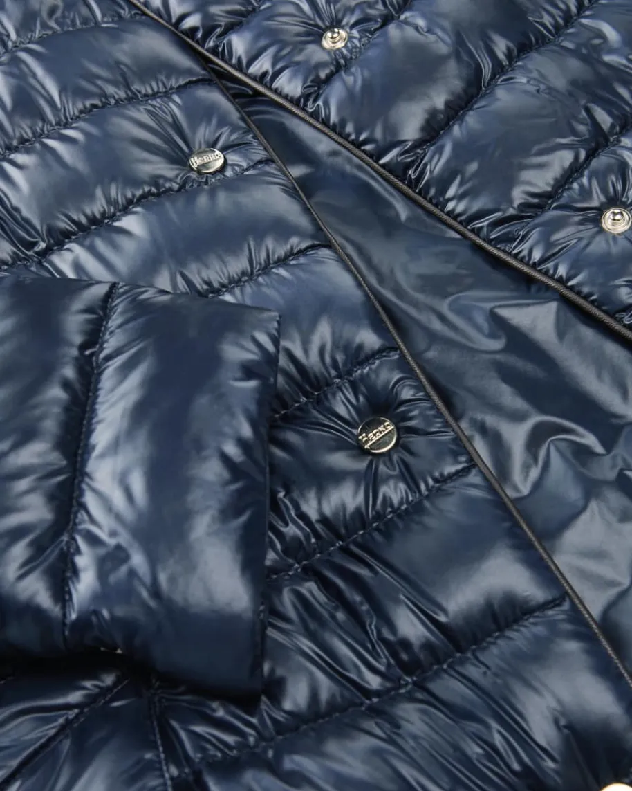 Daunenjacke für Damen von Herno in Navy. Das italienische Premium Label ist seitJahren bekannt für seine besonders leichten Daunenjacken, die mit zeitlos-sportiven Designs überzeugen. Dieses besonders leichte Modell begeistert mitchangierender Stepp-Optik und hochwertiger Daunen-Feder-Füllung, während dietaillierte Passform mit Abnähern sowie der abgerundete Saum einen femininenTwist verleihen.