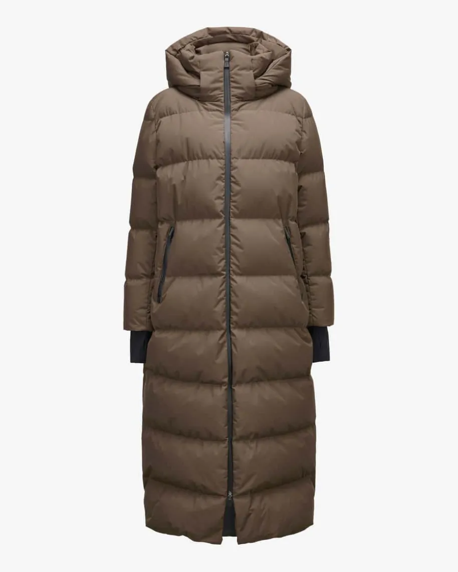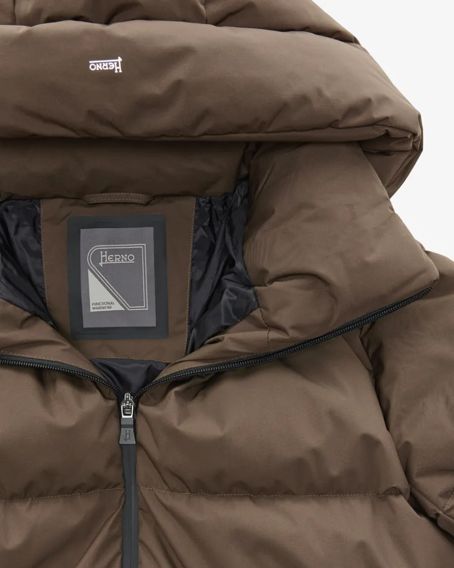 Daunenmantel für Damen von Herno in Oliv und Schwarz. Das italienische Label hatsich mitseinen besonders weichen und leichten Daunen-Modellen einen Namen in derModebranche gemacht und ist für Liebhaber nicht mehr wegzudenken. Auch dieseslange Modell präsentiert sich in voluminöser Stepp-Optik und hält an kaltenTagen nicht nur warm, sondern punktet auch durch die wasserabweisende Pro MeteoFabric Tool Ausrüstung.