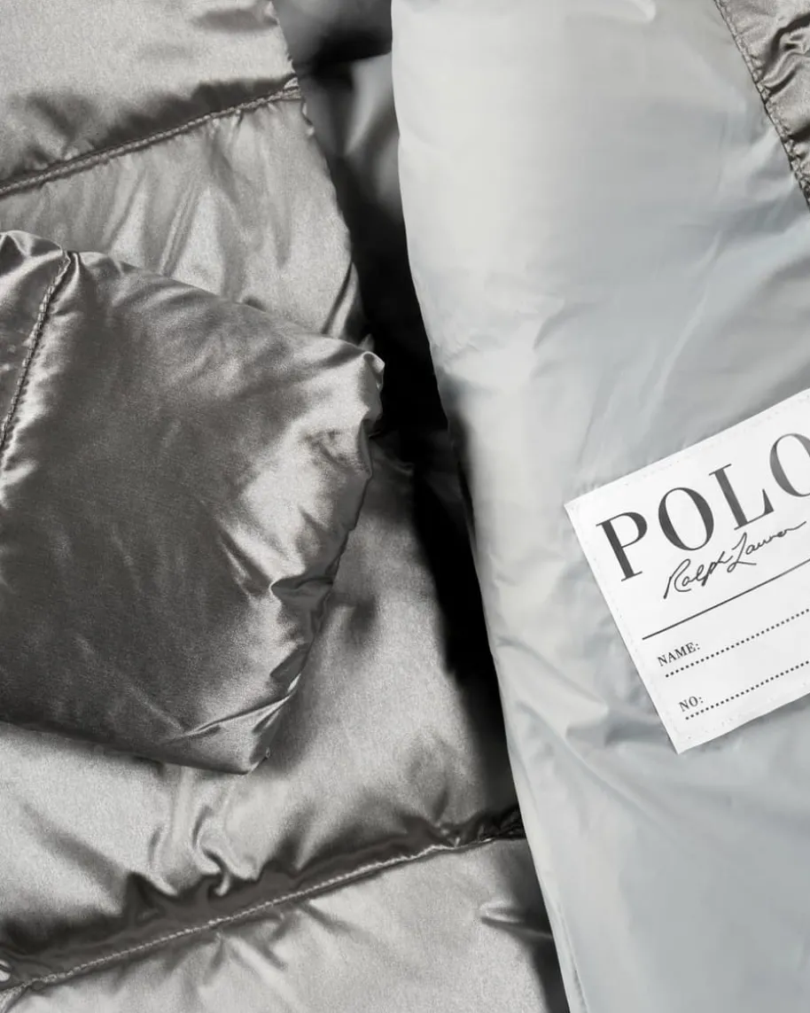Daunenmantel für Mädchen von Polo Ralph Lauren in Silber. Die Marke eine Ikonedes amerikanischen Lifestyles – sportlich, preppy, klassisch. Das Modellüberzeugt durch das klassische Stepp-Design in changierender Optik, während diehochwertige Daunen-Feder-Füllung optimalen Kälteschutz bietet. Der gesticktePoloreiter rundet die Jacke charakteristisch ab.