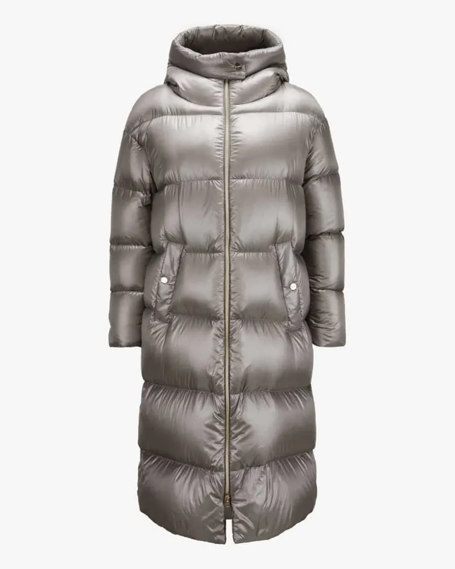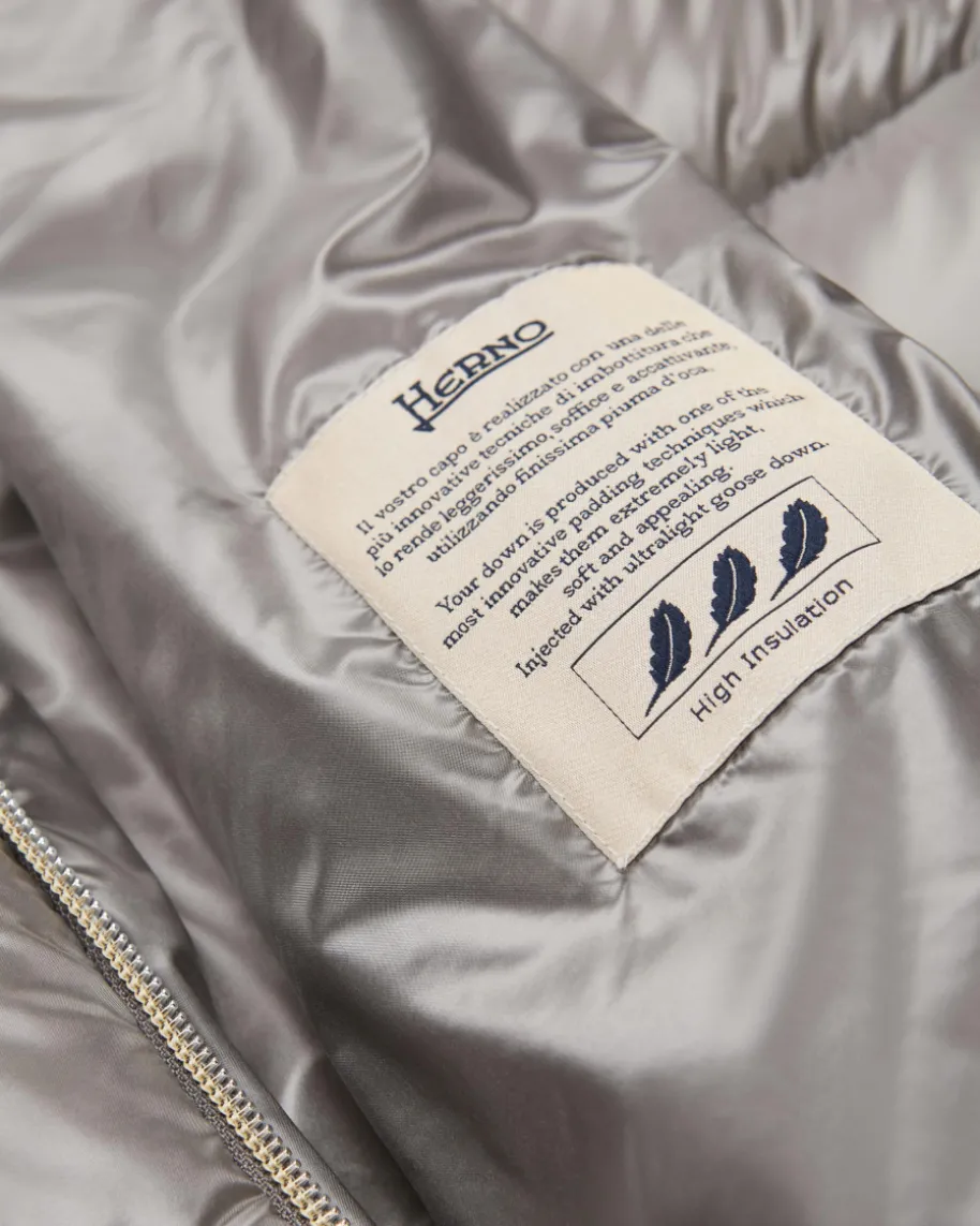 Daunenmantel für Damen von Herno in Hellgrau. Das italienische Premium Label istseit Jahren bekannt für seine besonders leichten Daunenjacken, die mit zeitlos-sportiven Designs überzeugen. Auch dieses verlängerte Modell begeistert mitchangierender Stepp-Optik sowie hochwertiger Daunen-Feder-Füllung, die fürangenehm-warme Tragemomente sorgt.