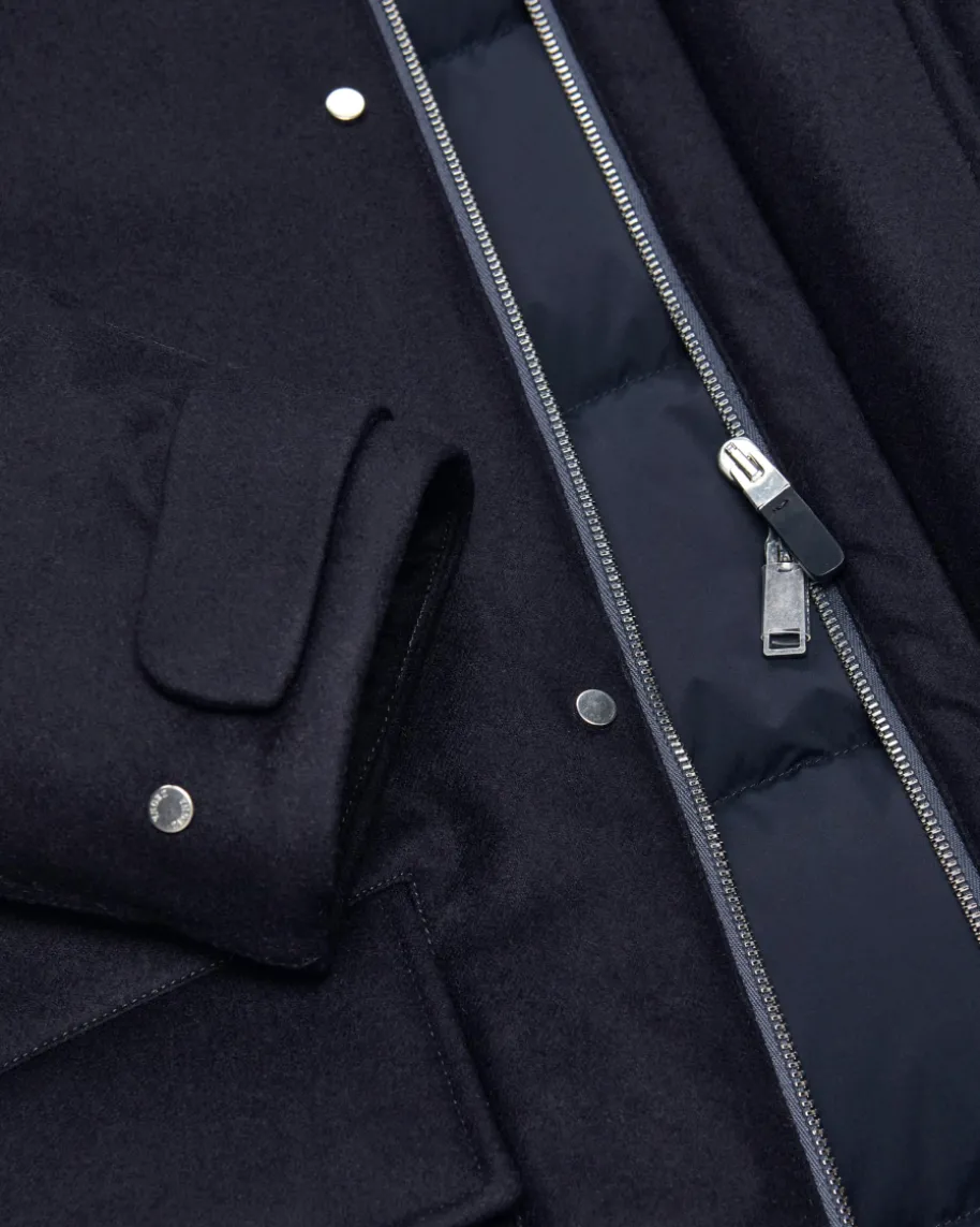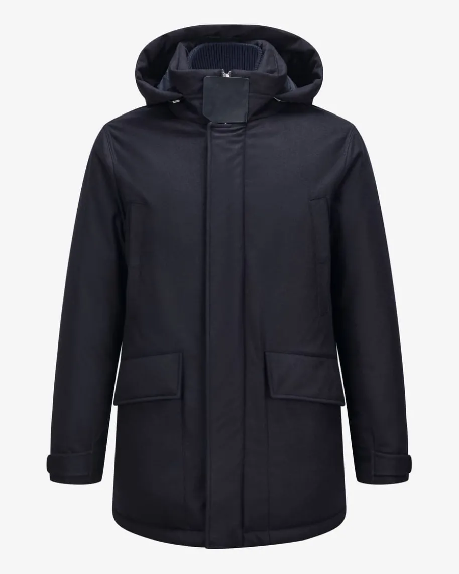 Daunenparka für Herren von Zegna in Navy. Das Modell aus hochwertiger Wollebesticht dank der wärmenden Daunen-Feder-Füllung mit angenehmen Tragemomenten,während funktionale Details einen vielseitigen Favoriten mit maskulinem Charmekreieren.