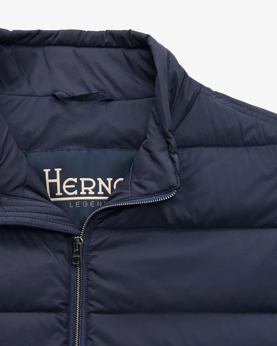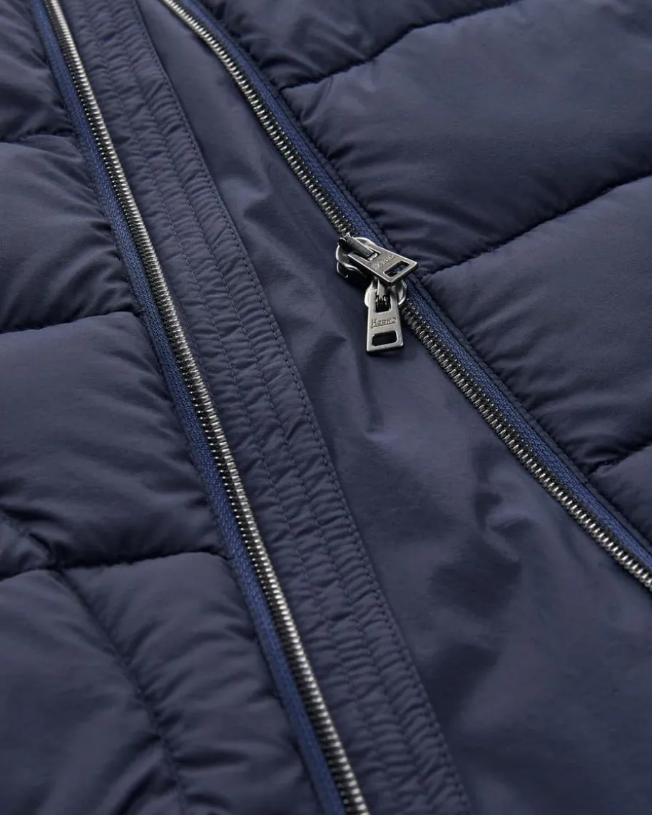 Daunenweste für Herren von Herno in Navy. Das Modell präsentiert sich dank derklassischen gesteppten Optik als sportiver Outdoor-Favorit, während die leichteDaunen-Feder-Füllung für hohen Tragekomfort mit wärmenden Momenten sorgt.