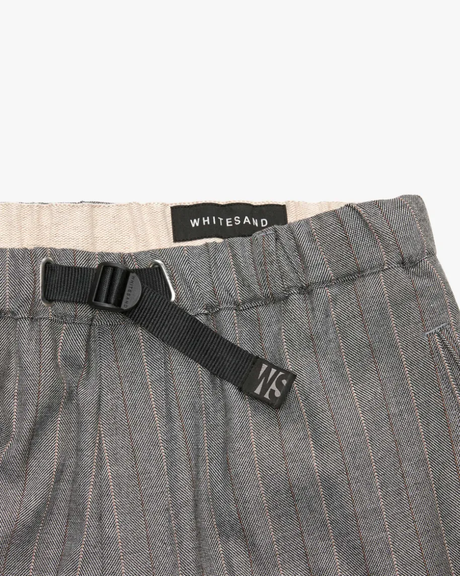 David Hose für Herren von White Sand in Grau, Orange und Creme. Made in Italy -Das verkürzte Modell aus softem Material-Mix präsentiert sich dank deselastischen Bundes mit legerem Charme, während der integrierte Gürtel mit Logo-Details modische Akzente setzt. Das gestreifte Fischgrät-Muster rundet denmaskulinen Look gekonnt ab.