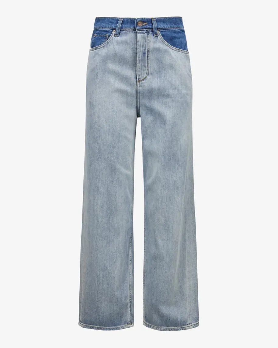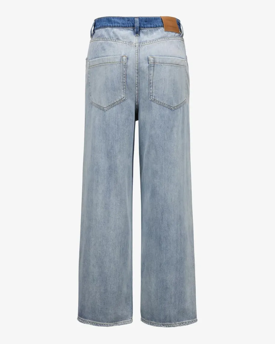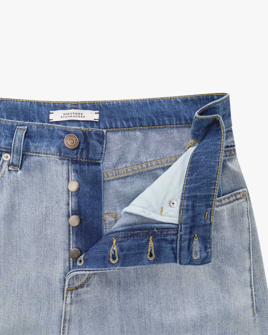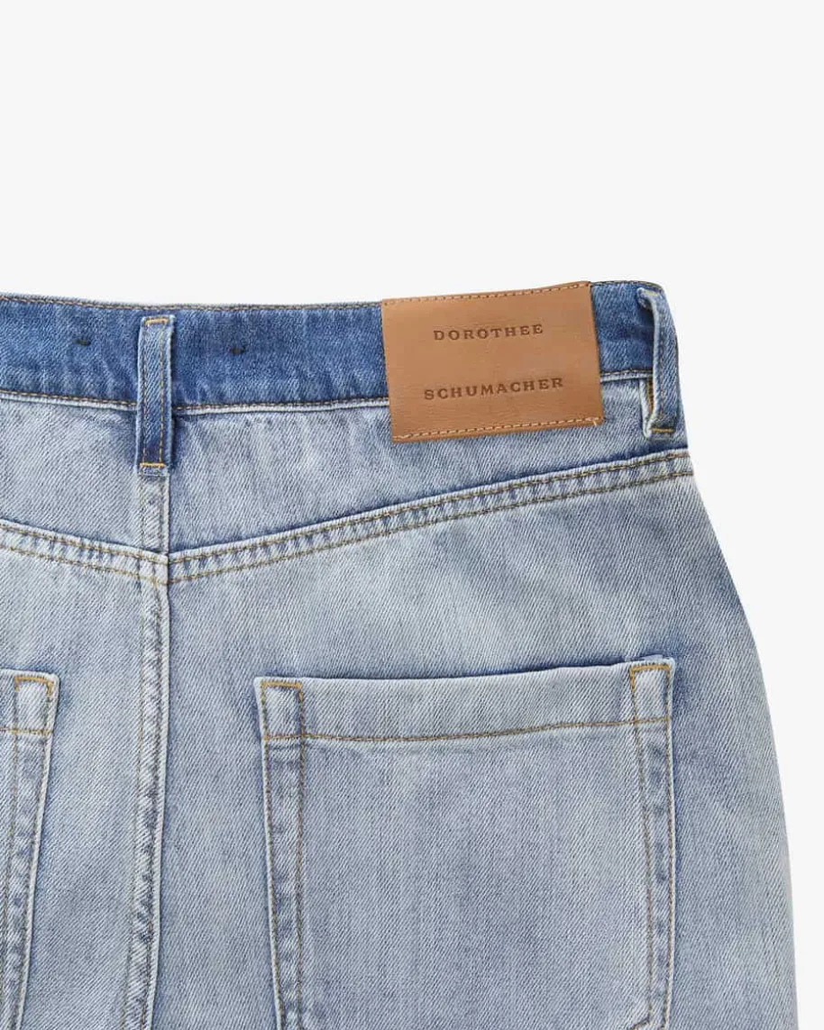 Denim Romance Jeans für Damen von Dorothee Schumacher in Hellblau und Blau. DasModell in fester Denim-Qualität präsentiert sich dank des weiten Beins alsangesagter Casual-Favorit, welcher durch das dekonstruierte Design im Bleached-Look sowie die Destroyed-Details an den Beinenden einen besonderen Charaktererhält.