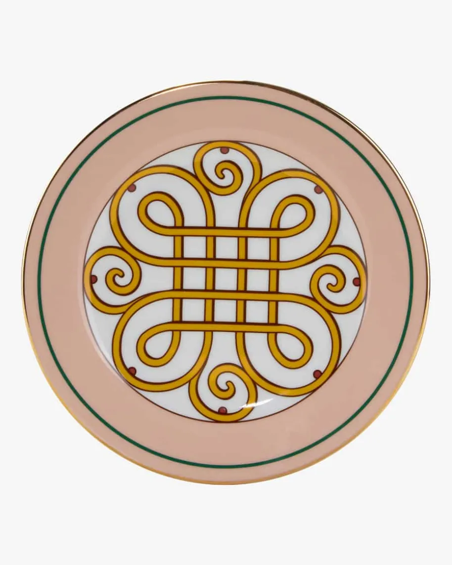 Dessert-Teller 2er-Set von La Double J in Nude und Bunt. Aus feinstemitalienischen Porzellan gefertigt, präsentiert sich das Teller-Set dank deshandgefertigten 18-karätigen Goldrands in edler Aufmachung. Der mailändischinspirierte Cortile-Print lässt die Servierteller zum kulinarischen Deko-Highlight avancieren.