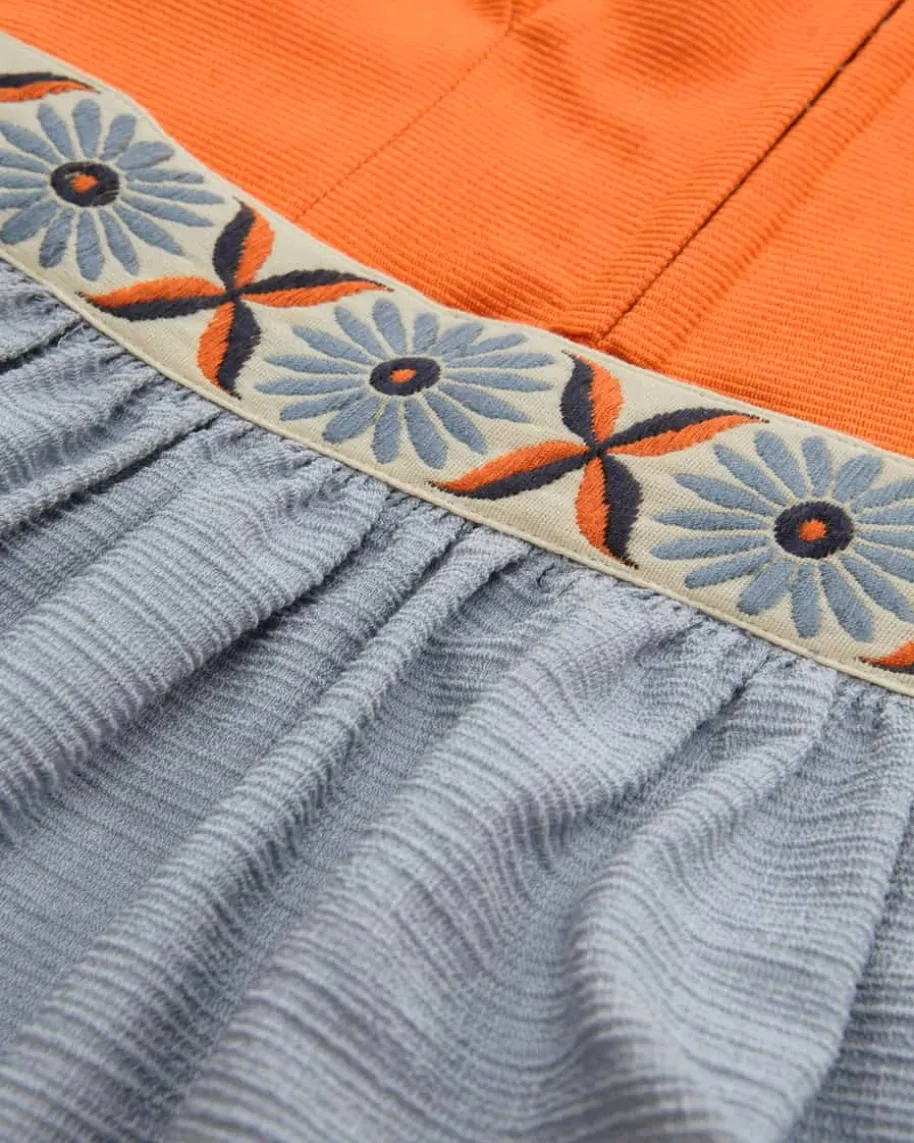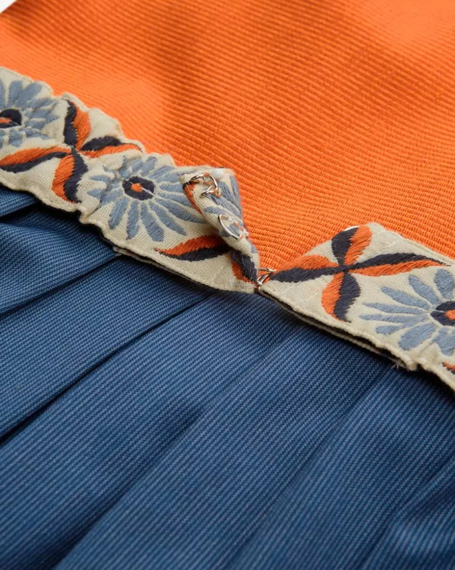 Dirndl lang für Damen von Sportalm in Orange, Dunkelblau und Hellblau. DasModell besticht mit der raffinierten Kombination aus verschiedenen Strukturen,farblich abgesetzter Schürze und Mieder mit Formstäbchen. Die floralenStickereien vollenden den moderne Trachten-Look gekonnt.