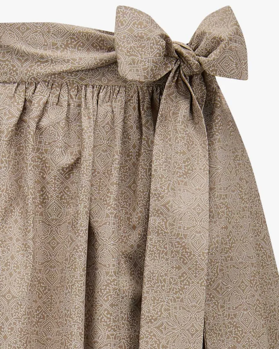 Dirndlschürze lang für Damen von LODENFREY in Taupe. DasModell präsentiert sich mitleichter Baumwoll-Qualität und feinem Ornament-Muster – Einfemininer Begleiterfür vielseitige Trachten-Looks.