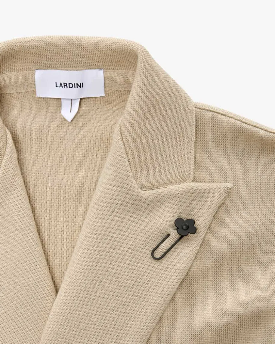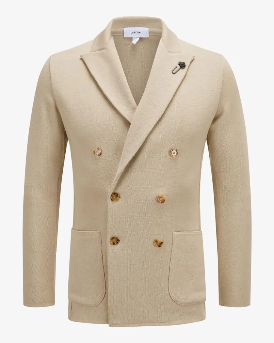 Doppelreiher-Stricksakko für Herren von Lardini in Sand. Das zweireihige Modellpräsentiert sich dank der feinen Strick-Aufmachung aus hochwertiger Merinowolleals optisches sowie haptisches Highlight, während die maskuline Sakko-Silhouettedem Gesamtbild einen eleganten Touch verleiht.