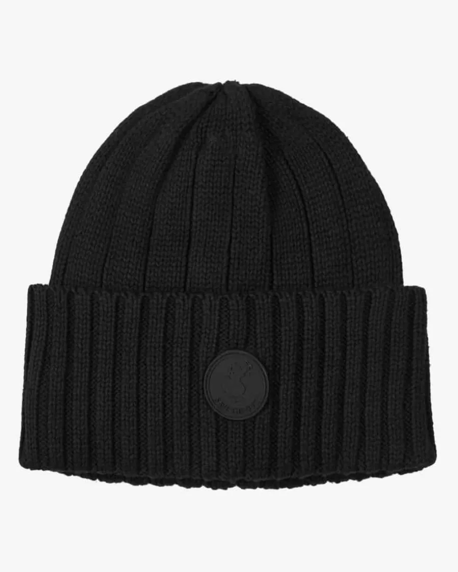 Doyle Mütze für Kinder von Save the Duck in Schwarz. Das Modell aus weicherBaumwolle in Rippstrick-Qualität punktet mit angenehmen Tragemomenten, währenddas Logo-Detail auf dem breiten Umschlag ein niedliches Accessoire für kalteTage schafft.