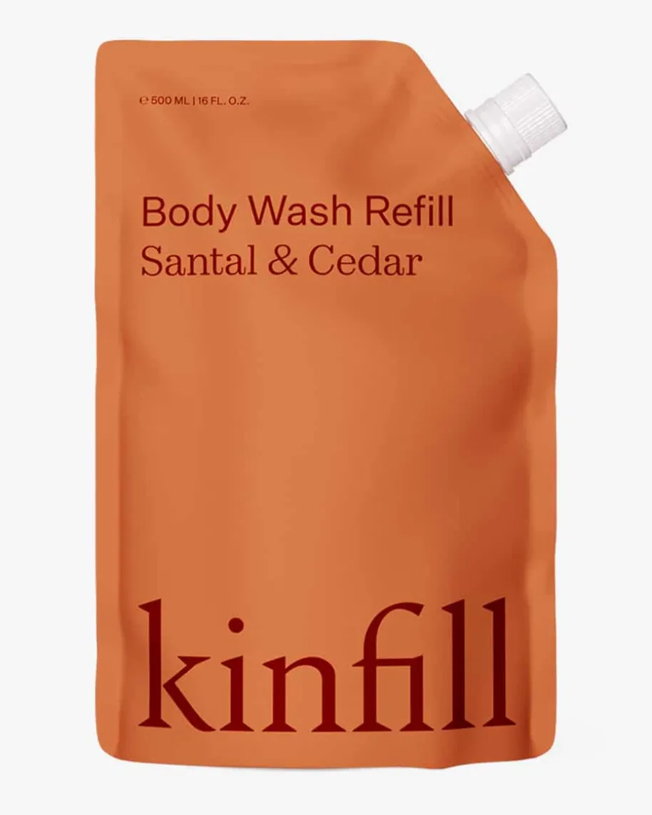 Duschgel Refill Santal & Cedar 500 ml von Kinfill. Angereichert mit Chia-,Ginseng- und Sheabutter-Extrakten (Karité) reinigt und hydratisiert diesesProdukt Ihre Haut mühelos und ist dabei frei von Mineralölen und Silikonen.
