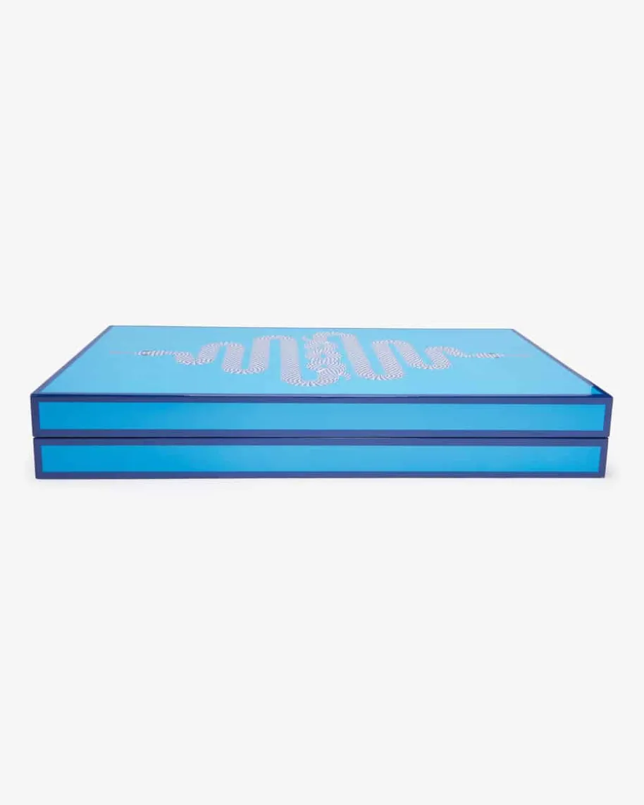 Eden Backgammon-Set von Jonathan Adler in Hellblau und Dunkelblau. Das edleDesign des Spiels besticht durch sein kunstvoll verschlungenes Schlangenpaar.Nicht nur optisch ein Highlight, auch lustige Spielabende sind mit diesem Setgarantiert. Genießen Sie dank des Spiels einen kurzweiligen Abend mit IhrenLiebsten!