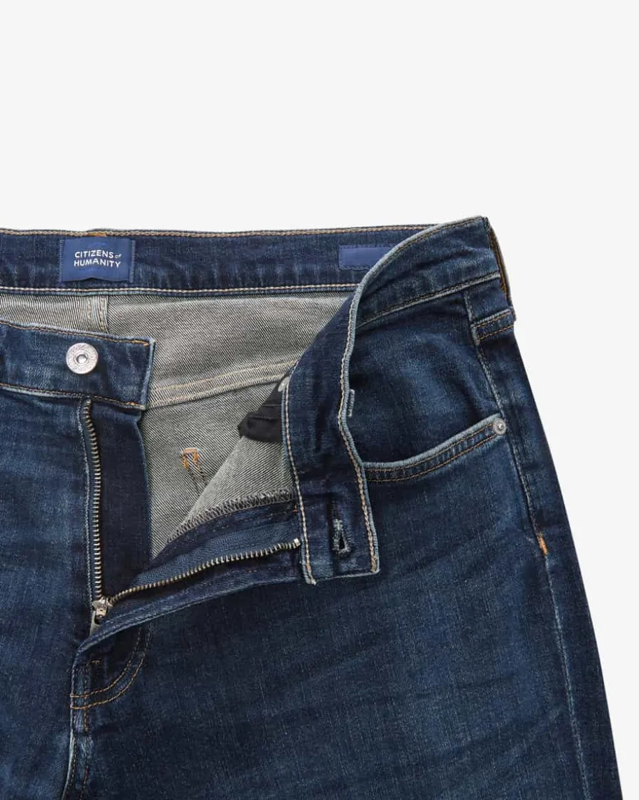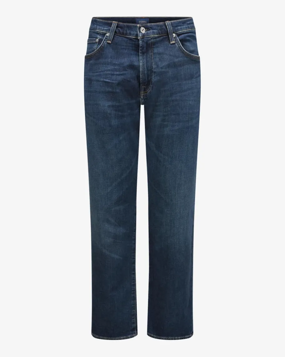 Elijah Jeans Relaxed Straight für Herren von Citizens of Humanity in Dunkelblau.Das Modell des in Los Angeles gegründeten Labels präsentiert sich dankcharakteristischer Denim-Waschung mit zeitlos-modernem Charakter, während derCashmere-Anteil für einen weichen Griff sorgt – Ein klassischer Jeans-Begleiterfür jeden Tag.