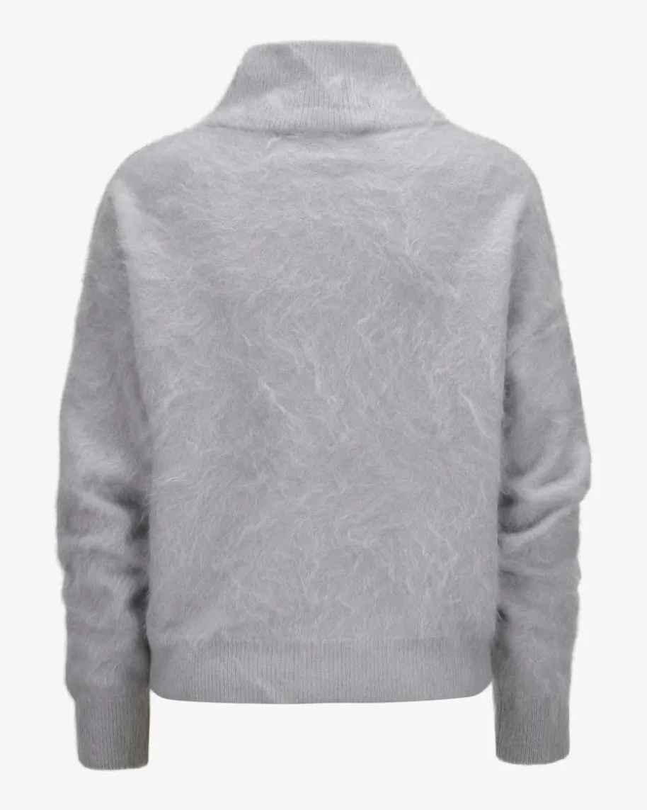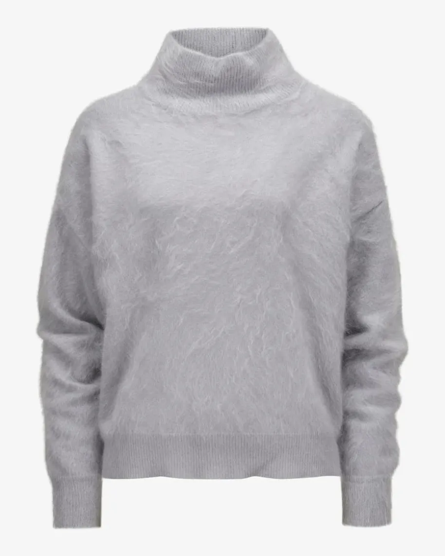 Embla Cashmere-Stehkragenpullover für Damen von Iris von Arnim in Blaugrau.Währenddie aufwändige Brushed-Aufmachung der hochwertigen Cashmere-Qualität eineflauschige Haptik und luxuriöse Optik verleiht, kreiert die weite Schnittführungeinen modischen Alltags-Liebling.
