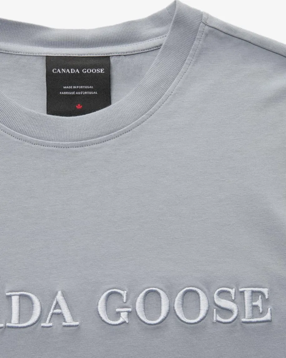Emersen T-Shirt für Herren von Canada Goose in Blaugrau. Das Modell avanciertdank der legeren Schnittführung zu einem modernen Basic, welches durch die 3D-Logo-Stickerei labeltypisch in Szene gesetzt wird und gleichzeitig das gewisseEtwas erhält.