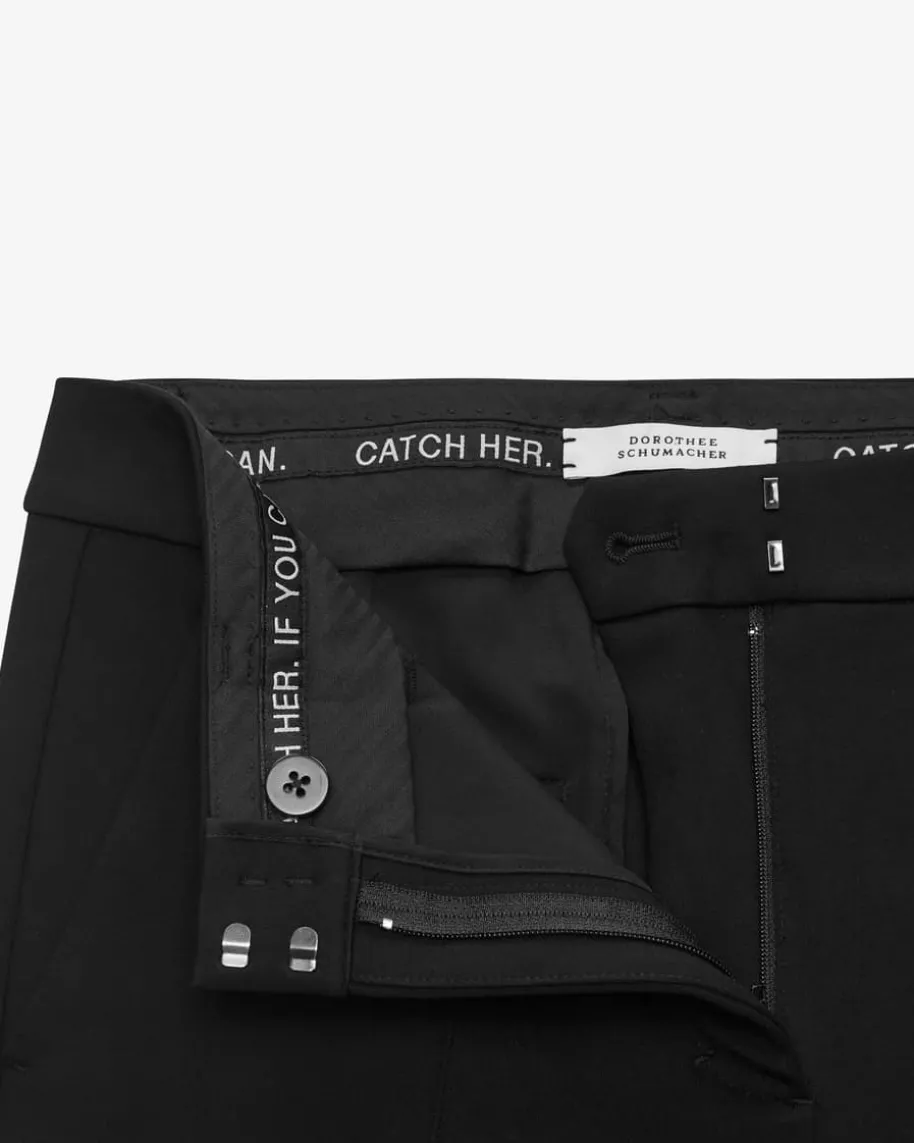 Emotionale Essence 7/8-Hose für Damen von Dorothee Schumacher in Schwarz. DasModell mit schmalem Bein präsentiert sich dank klassischer Details als zeitlos-eleganter Begleiter für Ihre Office-Garderobe.