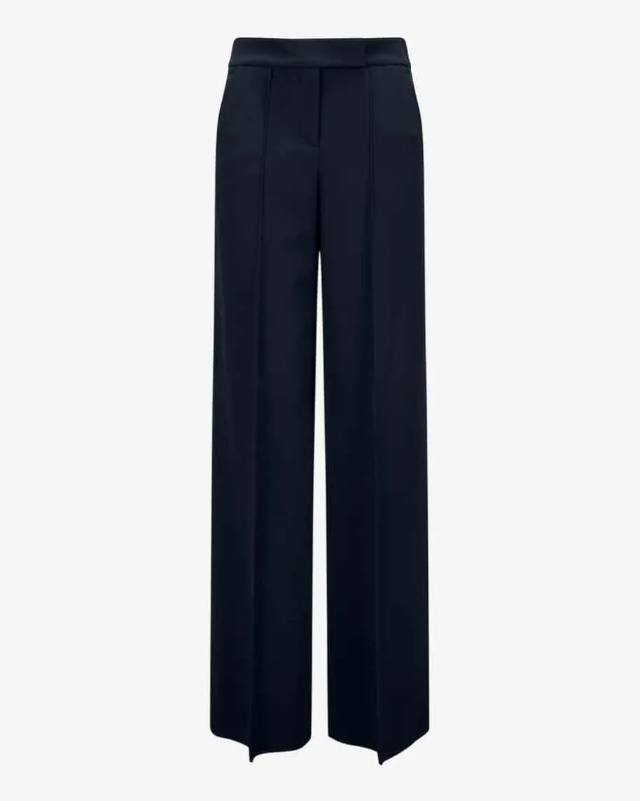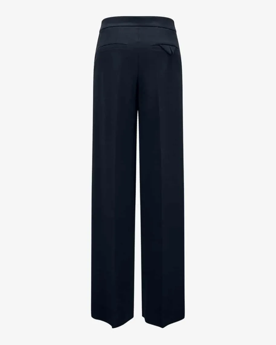 Emotional Essence l Hose für Damen von Dorothee Schumacher in Navy. DiesesModell punktet mit klassischem Design im Marlenehosen-Stil und avanciert so zumzeitlosen Must-Have in Ihrer Garderobe. Die schwere Material-Qualität sorgt mithoher Elastizität für perfekten Tragekomfort, während die abgenähten Bügelfaltendas Gesamtbild harmonisch vollenden.