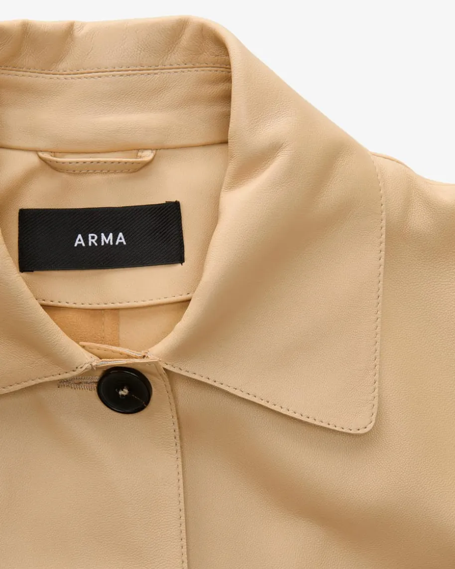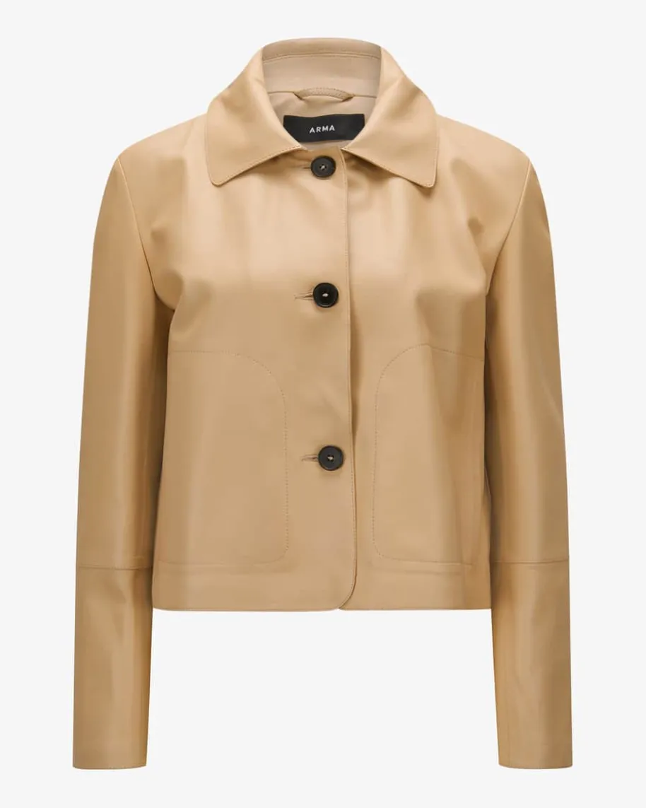 Emy Lederjacke für Damen von Arma in Beige. Das Modell begeistert durch dieVerwendung hochwertiger Lammleder-Qualität, welche ein edles Gesamtbild kreiert.Zugleich avanciert die Jacke durch das cleane Design sowie der Ziernähte zumtrendsicheren Alltags-Favoriten.