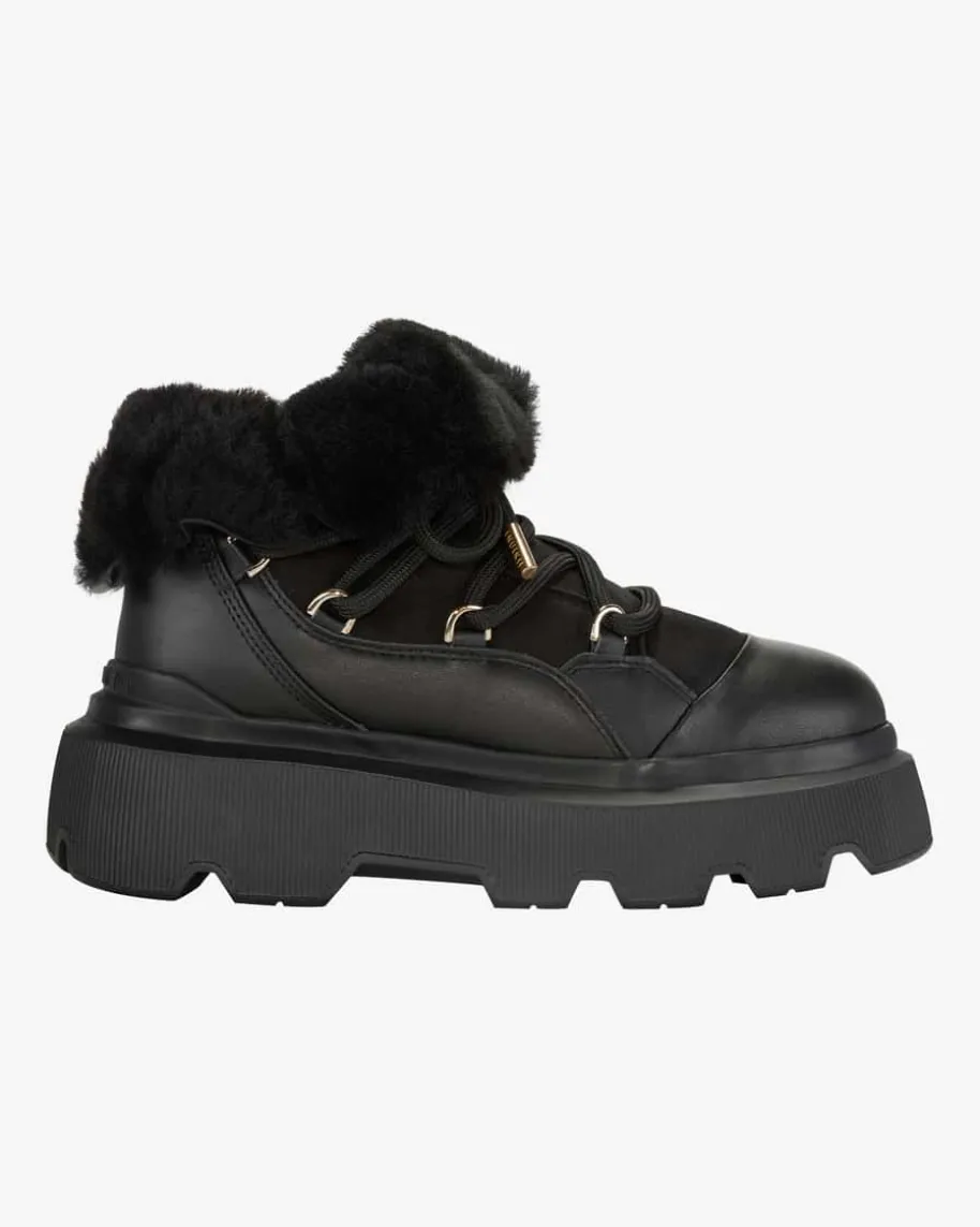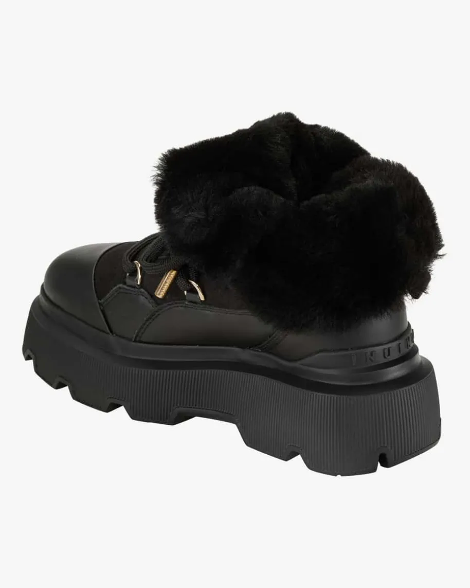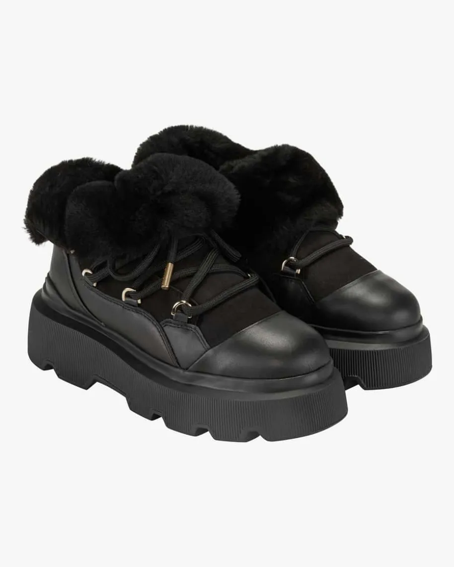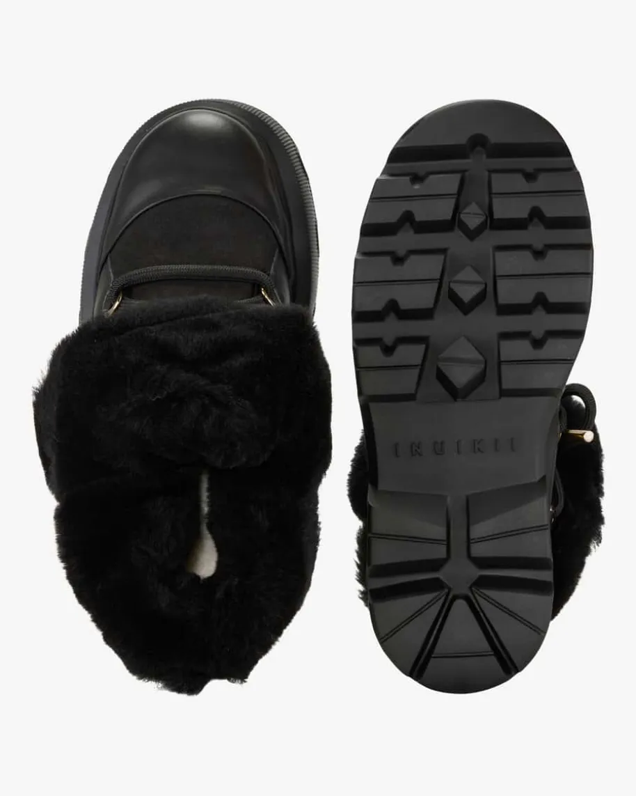 Endurance Trekking Boots für Damen von Inuikii in Schwarz. Zeitloses Design inVerbindung mit funktionalem Komfort zeichnen dieses Modell aus. Während diewasserabweisende sowie schneedichte Eigenschaft einen praktischen Begleiterkreiert, hält Sie die Lammfell-Innenseite auch an kalten Tagen warm. Zugleichpräsentiert sich das Modell dank der markanten Plateau-Sohle sowie derhochwertigen Velours-und Glattleder-Verarbeitung in modischer und zugleichstilvoller Aufmachung.