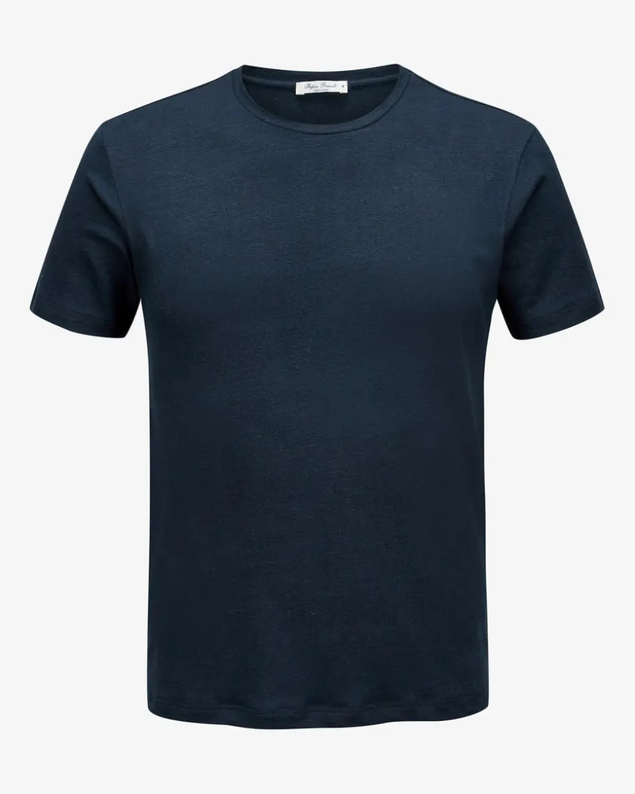 Enno Leinen-T-Shirt für Herren von Stefan Brandt in Marine. Dieses Basicpräsentiert sich in schlichter Aufmachung sowie strukturierter Leinen-Qualität,während die semi-transparenter Optik den Look modisch vollendet.