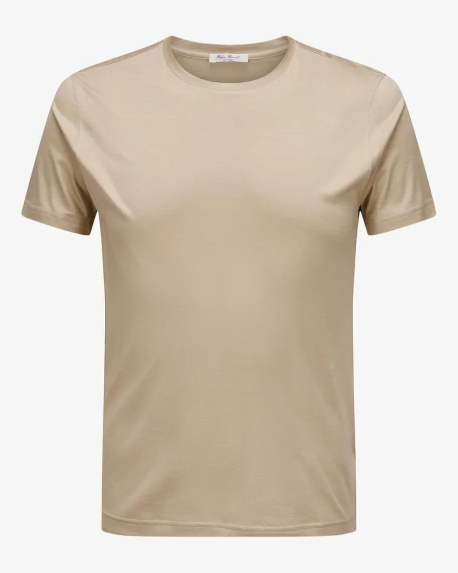 Enno Seiden-T-Shirt für Herren von Stefan Brandt in Nude. Aus luxuriösem Seiden-Baumwoll-Mix gefertigt, werden die Styles des deutschen Labels nach höchstenQualitäts-Standards und immer im Sinne der sozialen Verantwortung entworfen.Dieses Basic präsentiert sich in schlichter Aufmachung sowie elastischer, dünnerQualität, die für besonderen Tragekomfort sorgt.