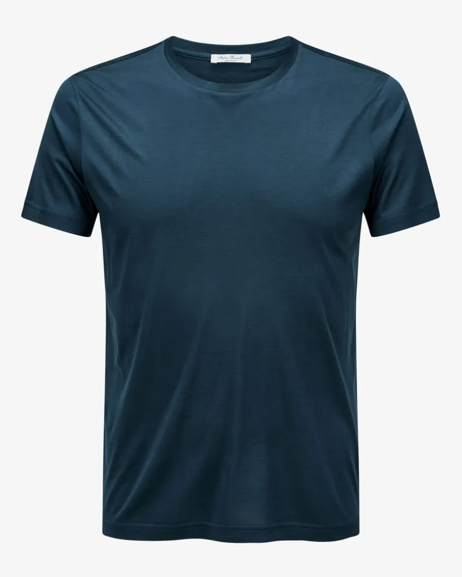 Enno Seiden-T-Shirt für Herren von Stefan Brandt in Navy. Aus luxuriösem Seiden-Baumwoll-Mix gefertigt, werden die Styles des deutschen Labels nach höchstenQualitäts-Standards und immer im Sinne der sozialen Verantwortung entworfen.Dieses Basic präsentiert sich in schlichter Aufmachung sowie elastischer, dünnerQualität, die für besonderen Tragekomfort sorgt.