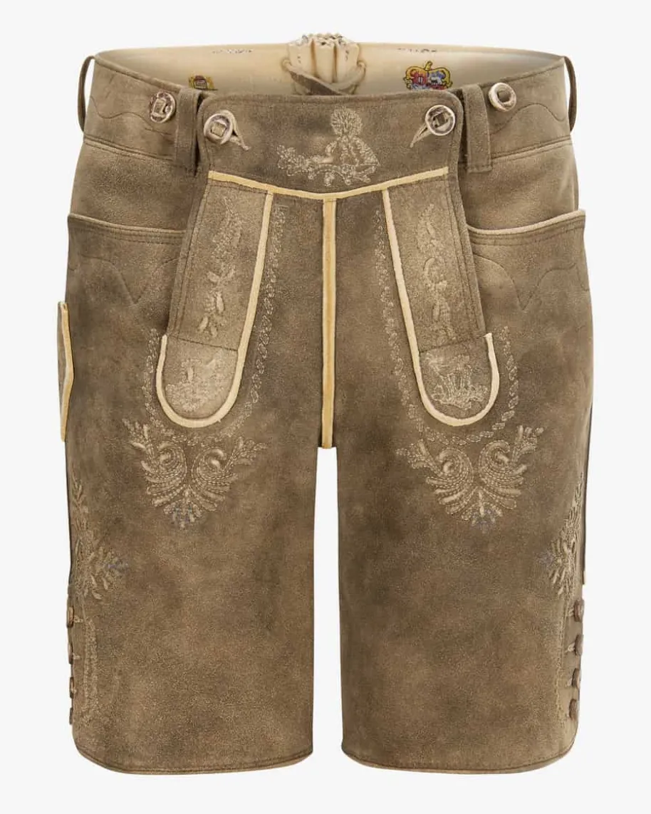 Erzherzog Ferdinand Lederhose kurz für Herren von Meindl in Dark Grey.Lederhandwerk aus Bayern – Bereits 1693 wurden bei Meindl die ersten Produkteaus Leder gefertigt und seit nun mehr als 70 Jahren fertigt das Traditionshaushochwertige Lederhosen, die von Kennern meist ein Leben lang geschätzt werden.Dank jahrelanger Erfahrung und einer stetig-hochwertigen Qualität ist Meindl zumgrößten lederverarbeitenden Betrieb in Deutschland und Österreich geworden. Dastraditionelle Modell Erzherzog Ferdinand mit aufwendigen aus feinem Hirschlederspiegelt dies gekonnt wider und besitzt ein handgesticktes Muster.