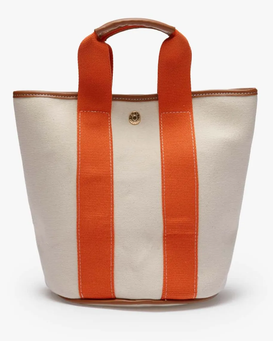 Essentials Cruise Bucket S für Damen von RUE DE VERNEUIL in Sand, Orange undCamel. Das Label präsentiert mit dieser Tasche einen modernen Alltags-Begleiter,der dank der Kombination aus Baumwoll-Polyester-Mix und hochwertigen Leder-Details zu einem praktischen wie auch angesagten Fashion-Highlight avanciert.