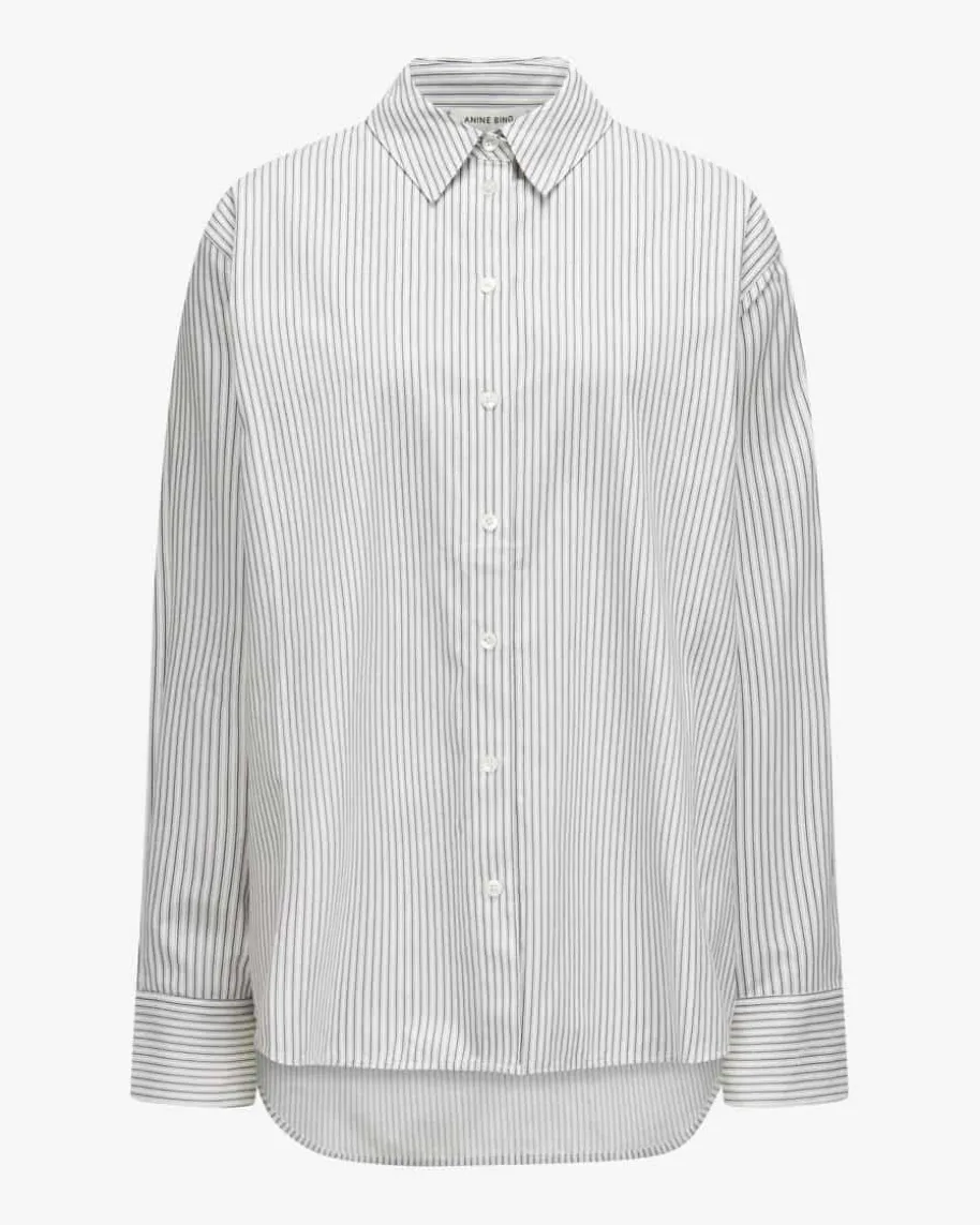 Essie Hemdbluse für Damen von Anine Bing in Weiß und Navy. 2012 in Los Angelesgegründet, vereint das Label skandinavischen Minimalismus mit amerikanischerCoolness. Das Modell in hochwertiger Baumwoll-Qualität überzeugt in gestreiftemDessin, während die schlichte Aufmachung ein zeitloses Essential kreiert dassich vielseitig kombinieren lässt.