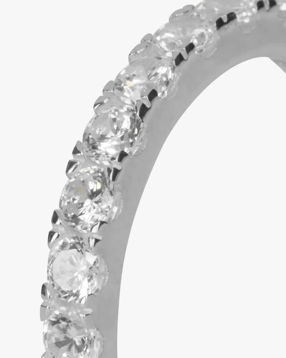 Eternity Ring Small für Herren von Hatton Labs in Silber. Das Modell gefertigtaus 925 Sterling Silber avanciert dank des Zirkonia-Besatzes zum modischenBlickfang. Egal ob für festliche Anlässe oder modische Outfits, dieser Ringstellt das perfekte Accessoire dar.