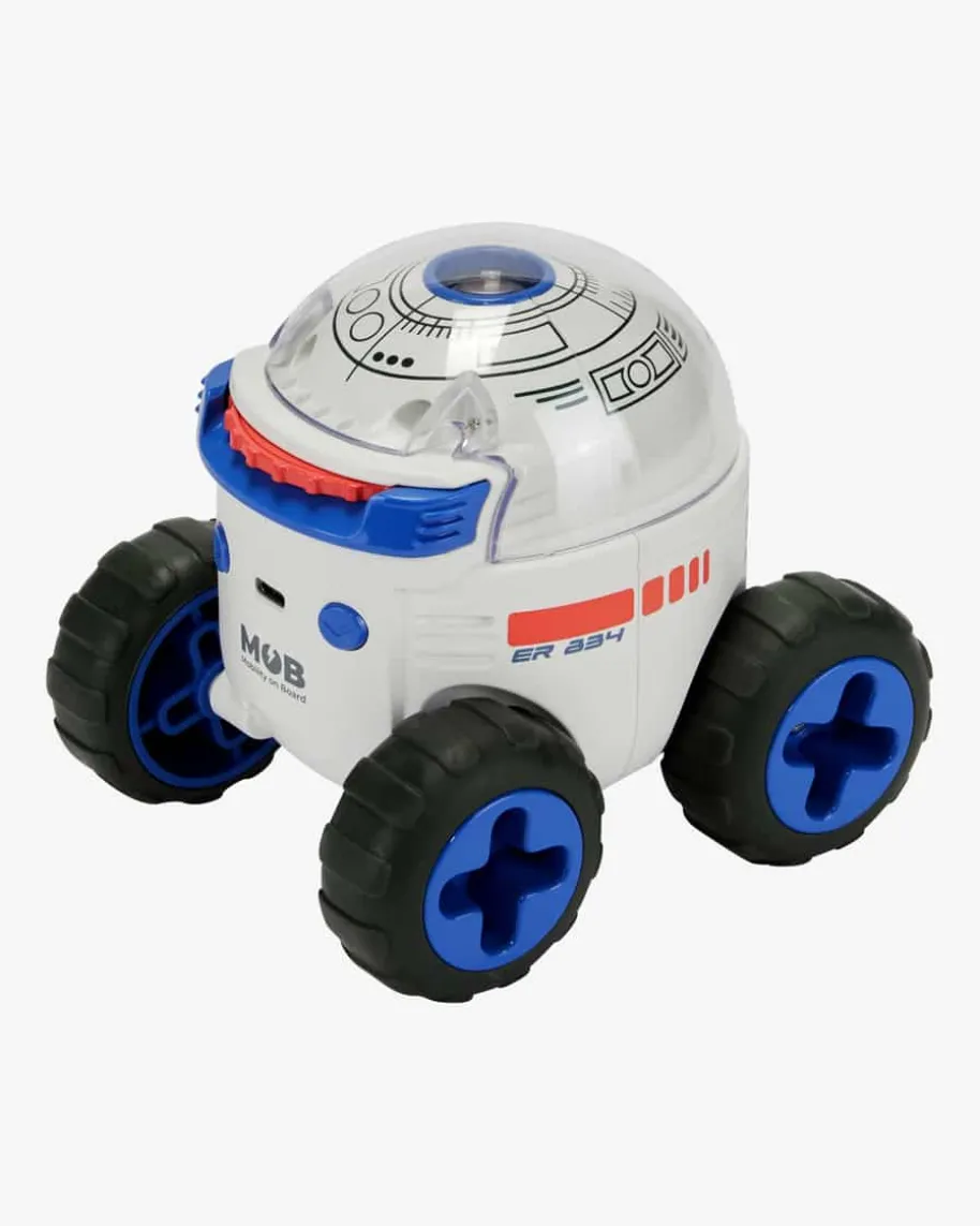 Explorer Leuchtprojektor für Kinder von MOB. Eine spannende Entdeckungsreisedurch unser Universum – Mit diesem kleinen leuchtenden Weltraumauto, dasinsgesamt 24 illustrierte Dias an die Wand projiziert, können Kinder zusammenmit Leo dem Astronauten spielerisch die Geheimnisse unserer Galaxiekennenlernen. Dadurch wird die Kreativität und Vorstellungskraft ihrer Kleinengefördert, während Eltern bei neugierigen Fragen das beigelegte Erklärbuch zurHand nehmen können und somit ein Erlebnis für Groß und Klein entsteht.