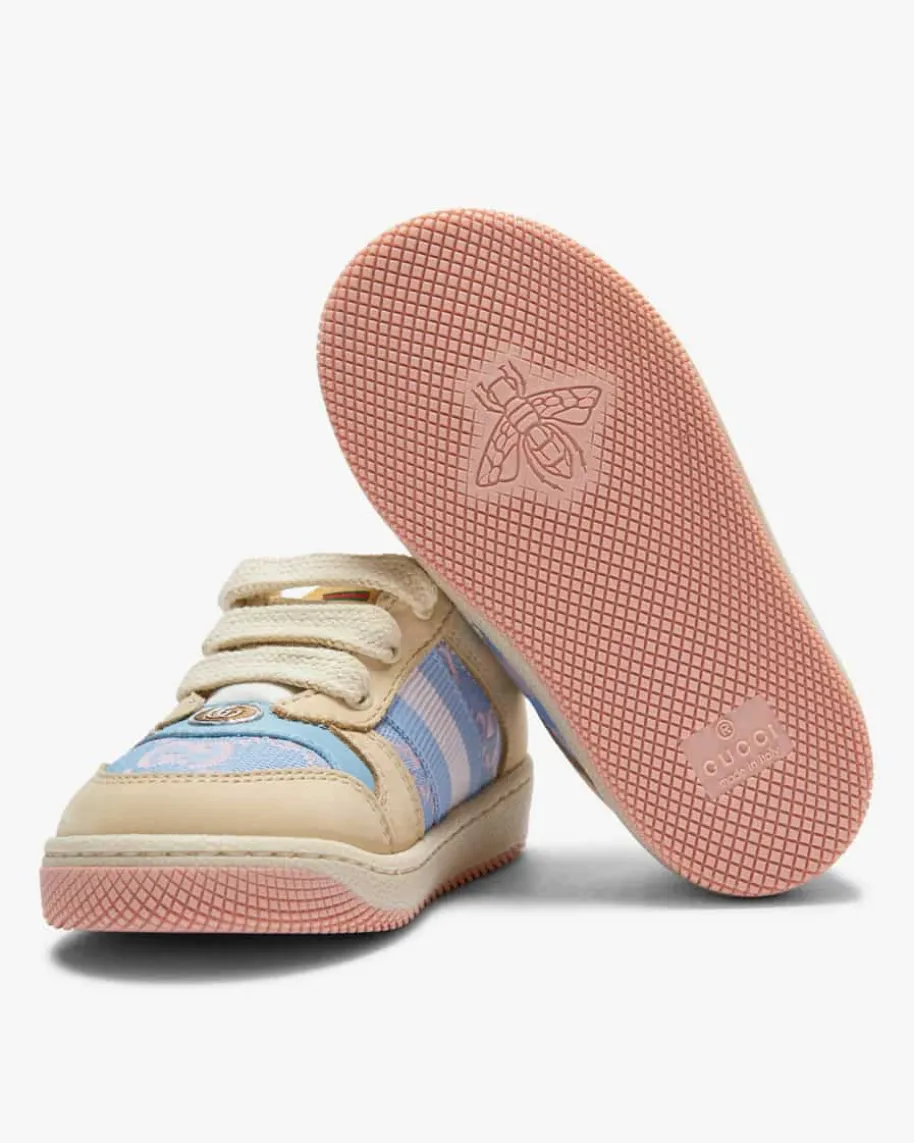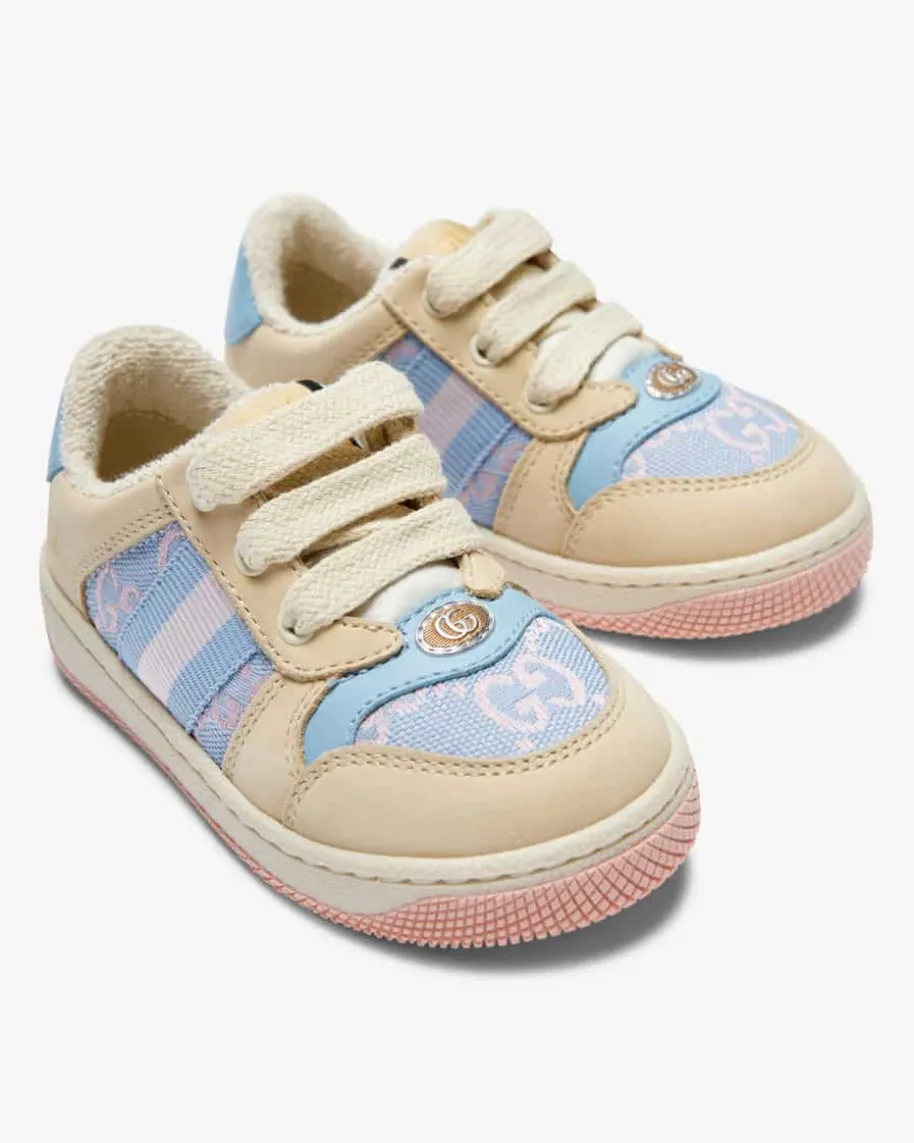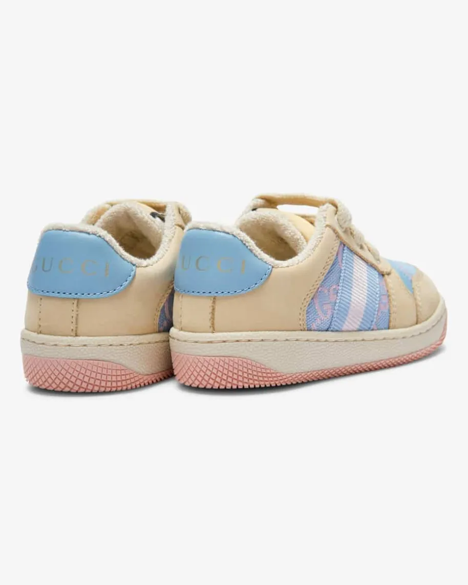 Faeru Sneaker für Kinder von Gucci Kids in Sand, Rosa und Hellblau. Das Modellpräsentiert sich dank der modernen Farbkombination als niedlicher Favorit.Während das Frottee-Innenfutter für angenehme Tragemomente sorgt und Logo-Details den Gesamtlook harmonisch abrunden.