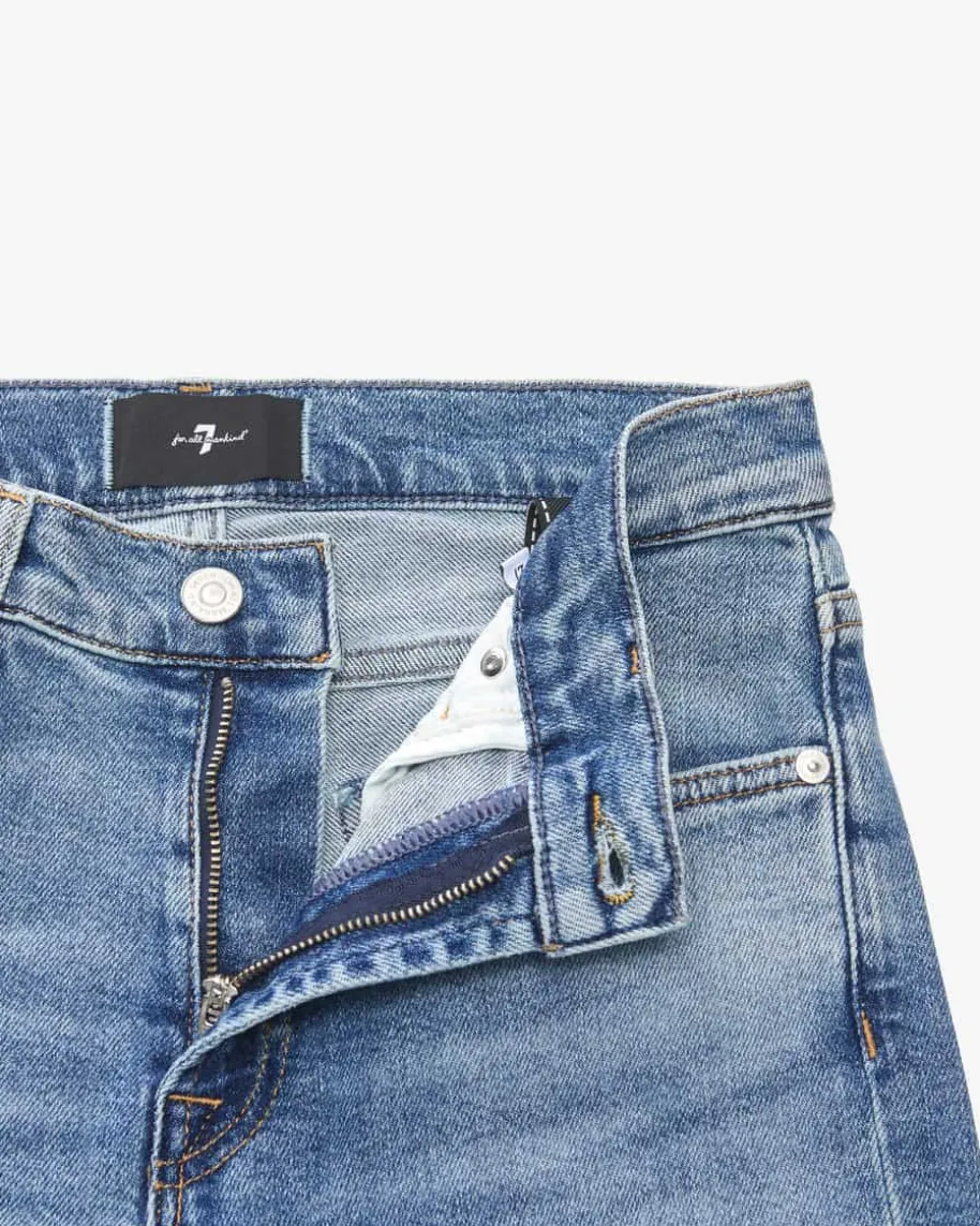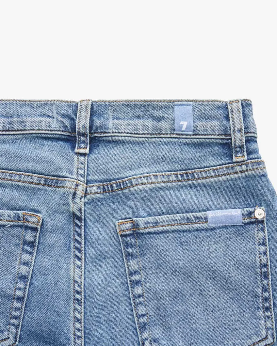 Fancy Jeans Bootcut Tailorless für Damen von 7 For All Mankind in Blau. DasModell in elastischer sowie fester Denim-Qualität avanciert dank dem Washed-Lookund ausgestelltem Bein mit ausgefranstem Saum zum komfortablen Hosen-Begleitermit modischem Twist.