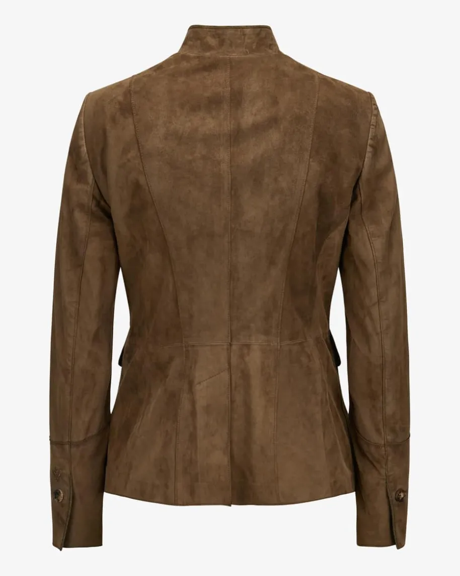 Fidelia Trachten-Lederjacke für Damen von Habsburg in Braun. Dank hochwertigerLammvelours-Qualität überzeugt dieses Modell sowohl haptisch als auch optisch,während die dezenten Schurwoll-Paspelierungen das Gesamtbild edel vollenden. Dertaillierte Schnitt setzt zudem feminine Akzente.