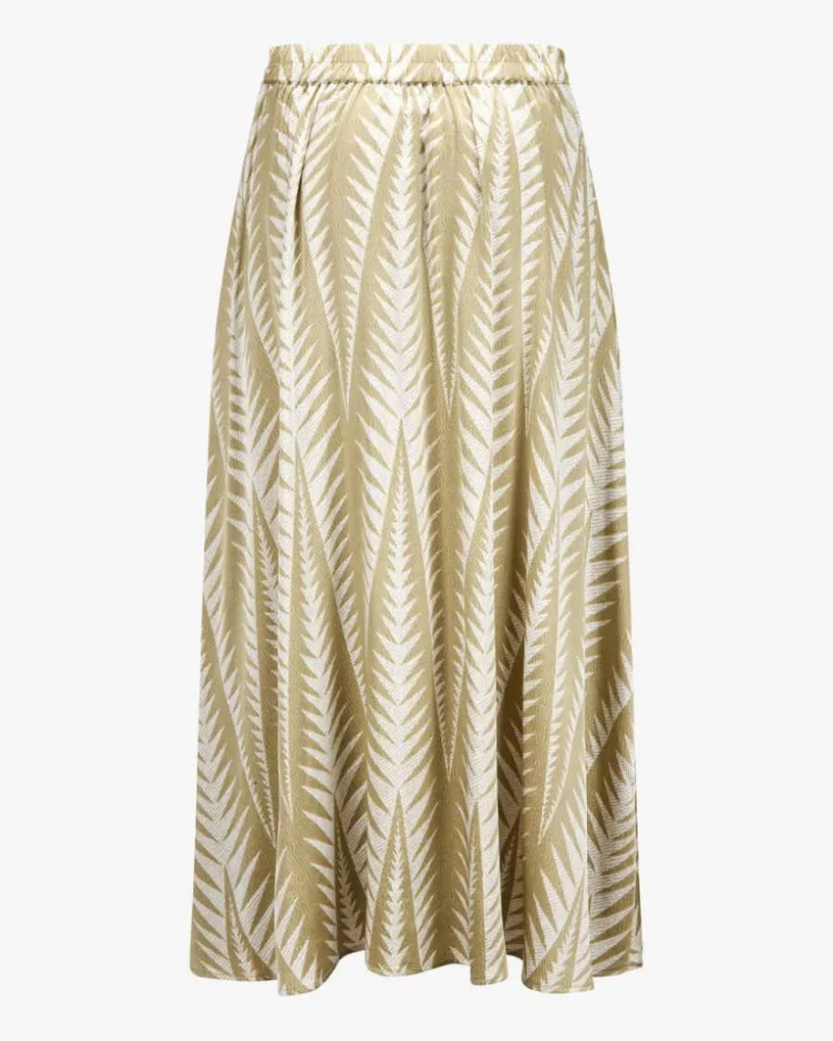 Fides Seiden-Maxirock für Damen von Hemisphere in Khaki und Creme. Die deutscheMarke steht für luxuriöse Strick- und Kaschmirteile mit Fokus auf Qualität,Weichheit und zeitlose Farben. Auch dieses Modell in hochwertiger Seiden-Qualität überzeugt in elastischer Aufmachung, welche für angenehme Tragemomentesorgt, während das Allover-Dessin einen besonderen Begleiter für edle Lookskreiert. In Kombination mit der passenden Tunika schaffen sie einen femininenAllover-Look.