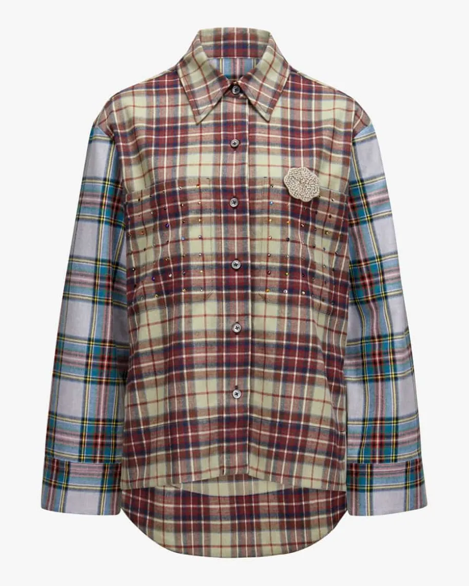 Flanellbluse für Damen von Odeeh in Bunt. Das deutsche Designerduo hinter Odeehverbindet handwerkliche Präzision mit expressiven Prints und Couture-Flair –Made in Germany. Das Modell in weichem Griff und hochwertiger Baumwoll-Qualitätüberzeugt mit buntem Schmucksteinbesatz und glitzernder Brosche, während dasKaro-Dessin den Gesamtlook harmonisch abrundet.