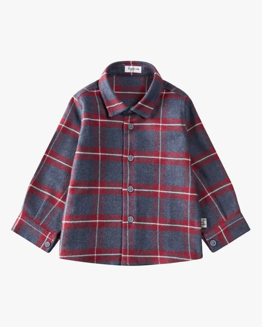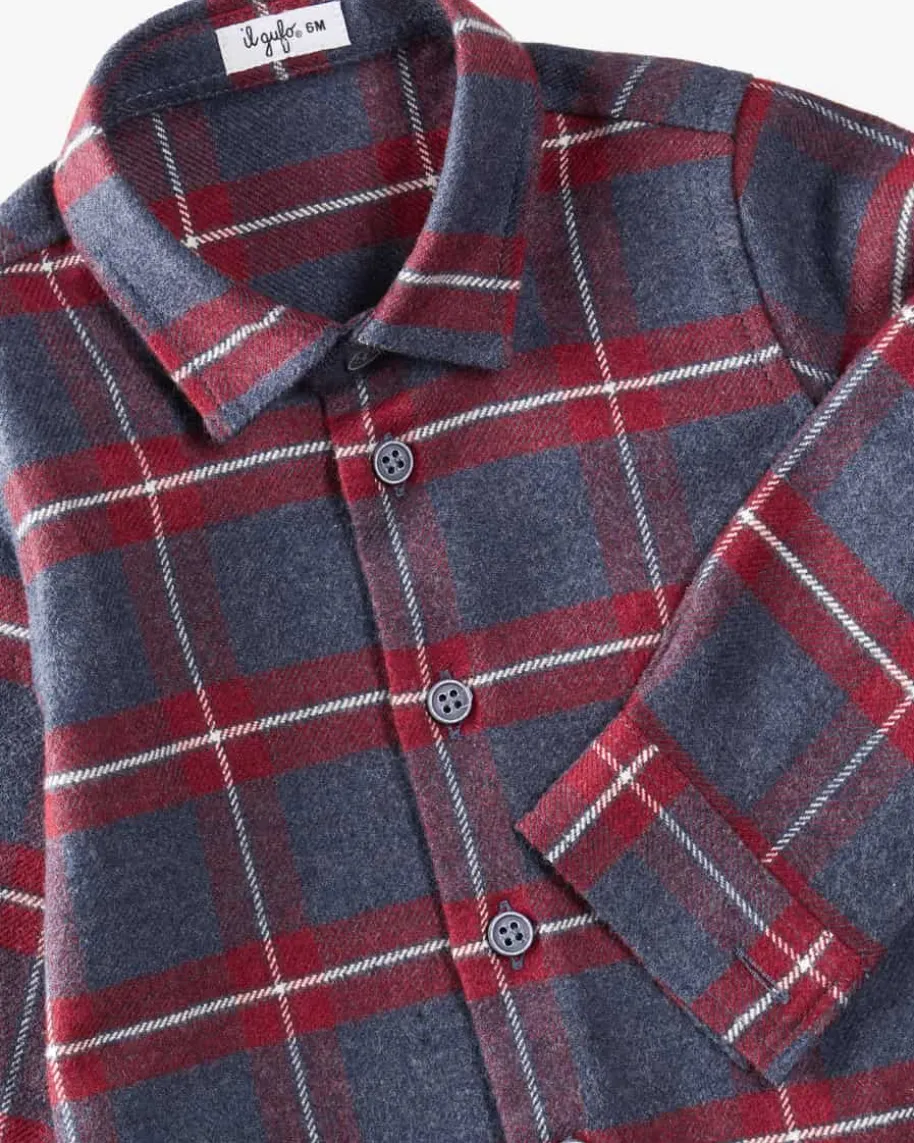 Flanellhemd für Babys von Il Gufo in Bordeaux, Navy und Weiß. Das Modellpräsentiert sich mit weicher Baumwoll-Flanell-Verarbeitung, die für angenehmenTragekomfort sorgt. Klassische Hemd-Details und das eingewebte Karo-Musterrunden den Look gekonnt ab.