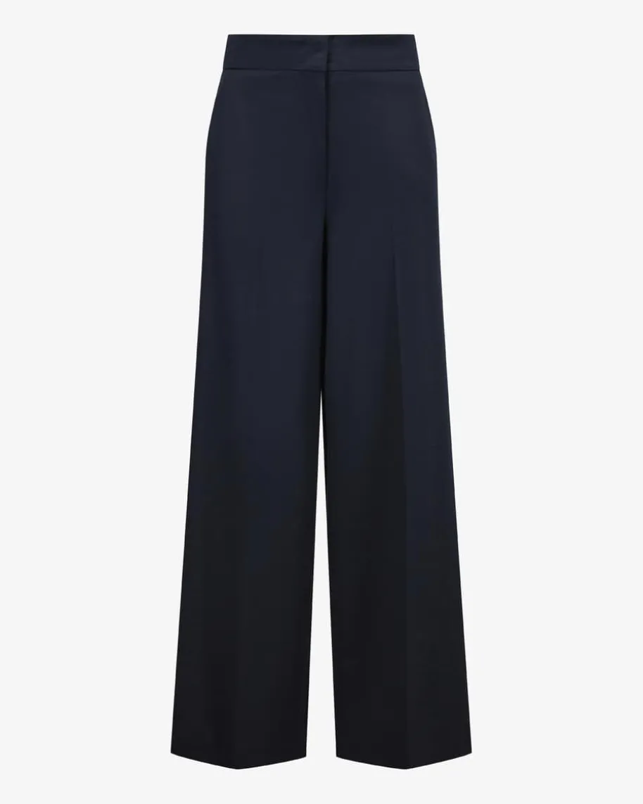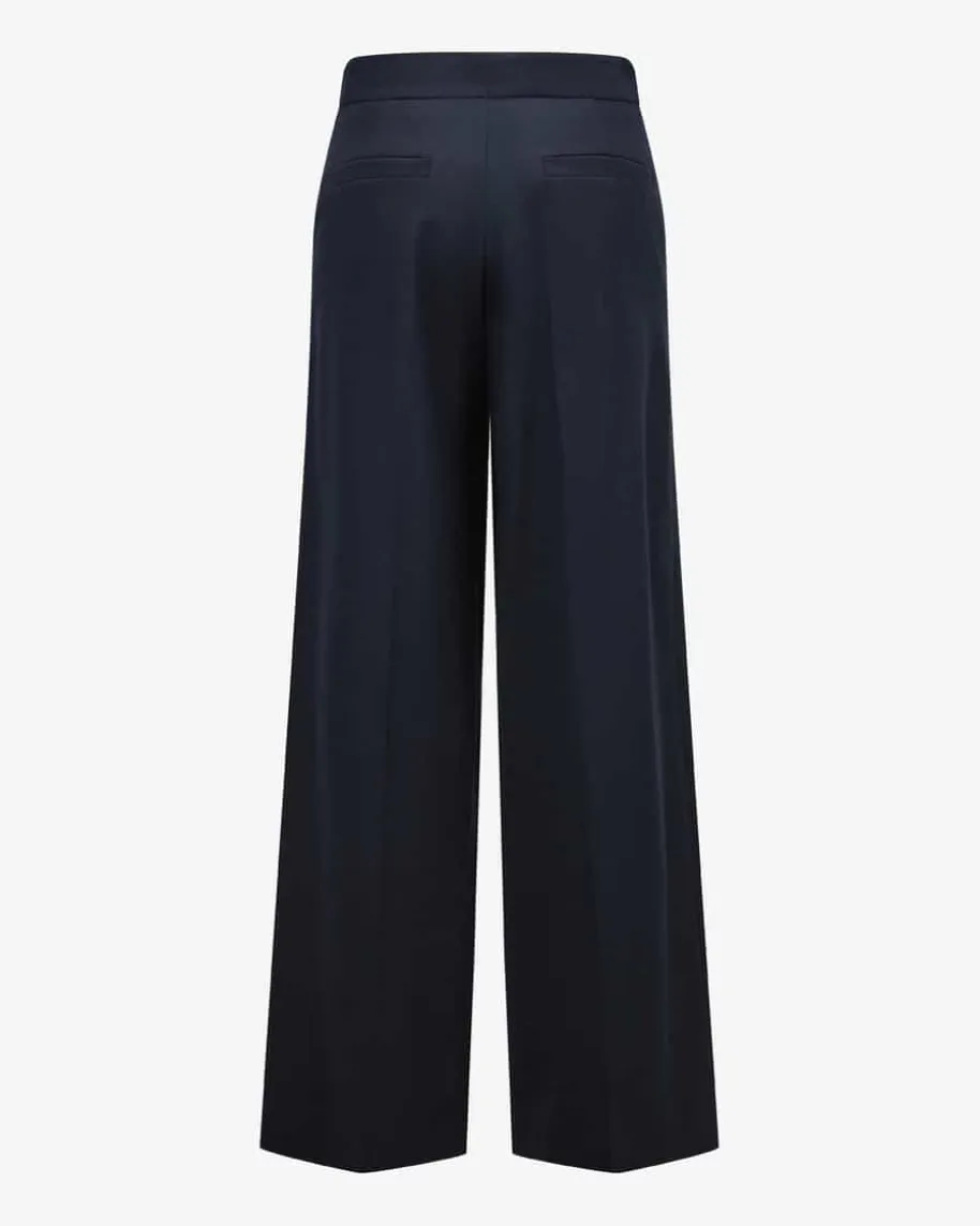 Flanellhose für Damen von Odeeh in Navy. Das Modell überzeugt mit angenehmer,leicht elastischer Schurwoll-Qualität, während die weite Schnittform undklassische Details das Gesamtbild stilvoll abrunden und einen femininen Power-Look für vielseitige Office-Styles kreieren.