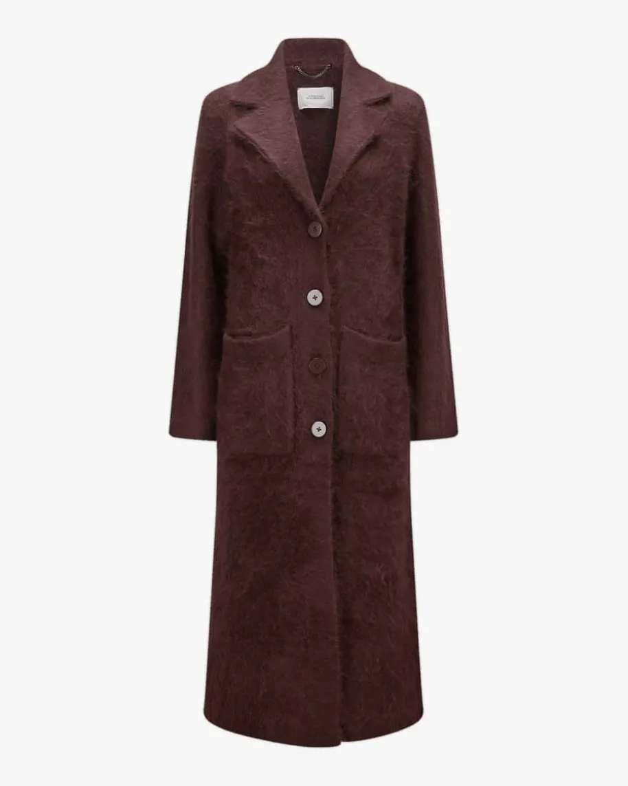 Fluffy Statement Strickmantel für Damen von Dorothee Schumacher in Schoko.Feminine Power aus Deutschland – Dorothees Looks verbinden Stärke mitverspielter Eleganz. Dieses Modell aus hochwertigem Schurwoll-Cashmere-Mixpräsentiert sich in weicher Brushed-Aufmachung und überzeugt somit sowohl alshaptisches wie auch optisches Highlight.