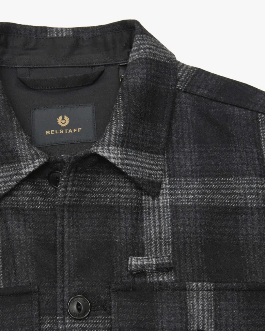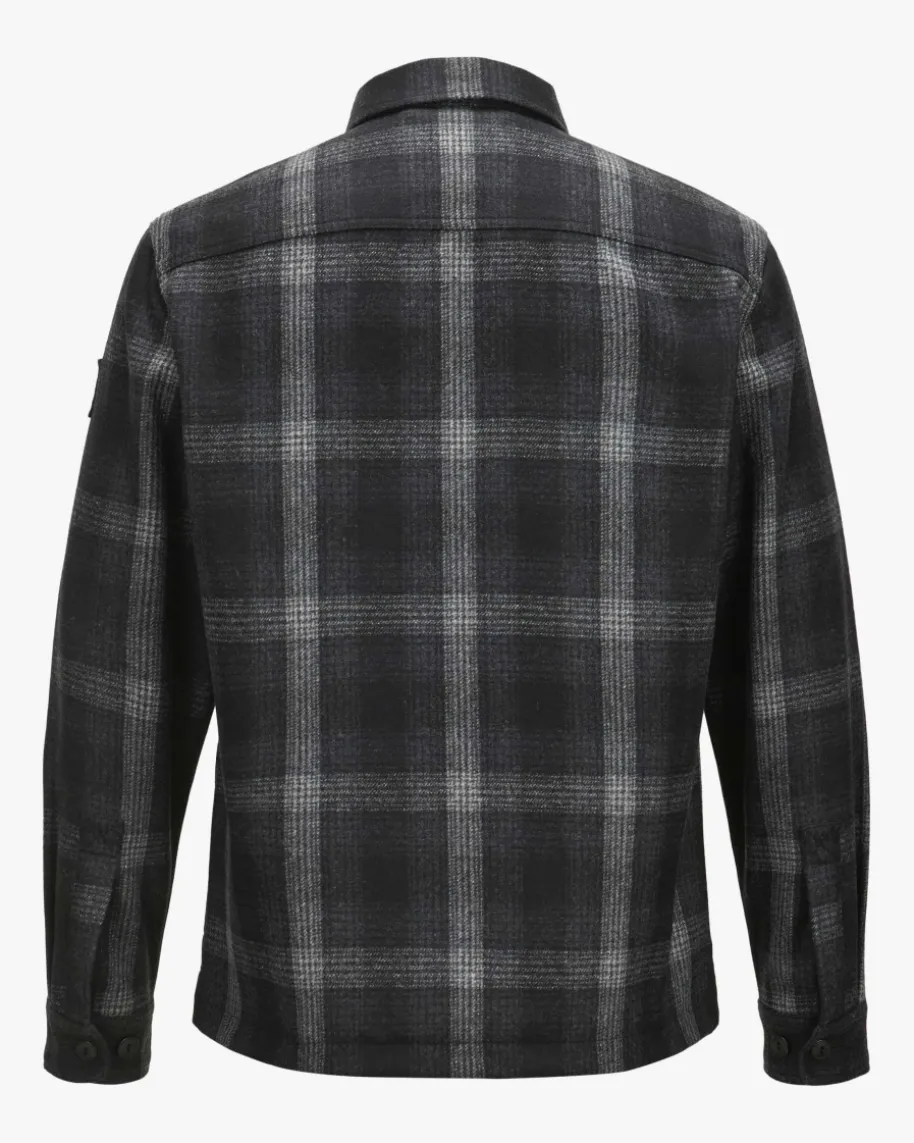 Forge Overshirt für Herren von Belstaff in Schwarz, Anthrazit und Hellgrau.Während das Modell dank dem hochwertigen und weichen Woll-Mix im Karo-Mustersowohl haptisch als auch optisch überzeugt, kreiert die legere Hemdjacken-Aufmachung einen maskulinen Look mit Stil.
