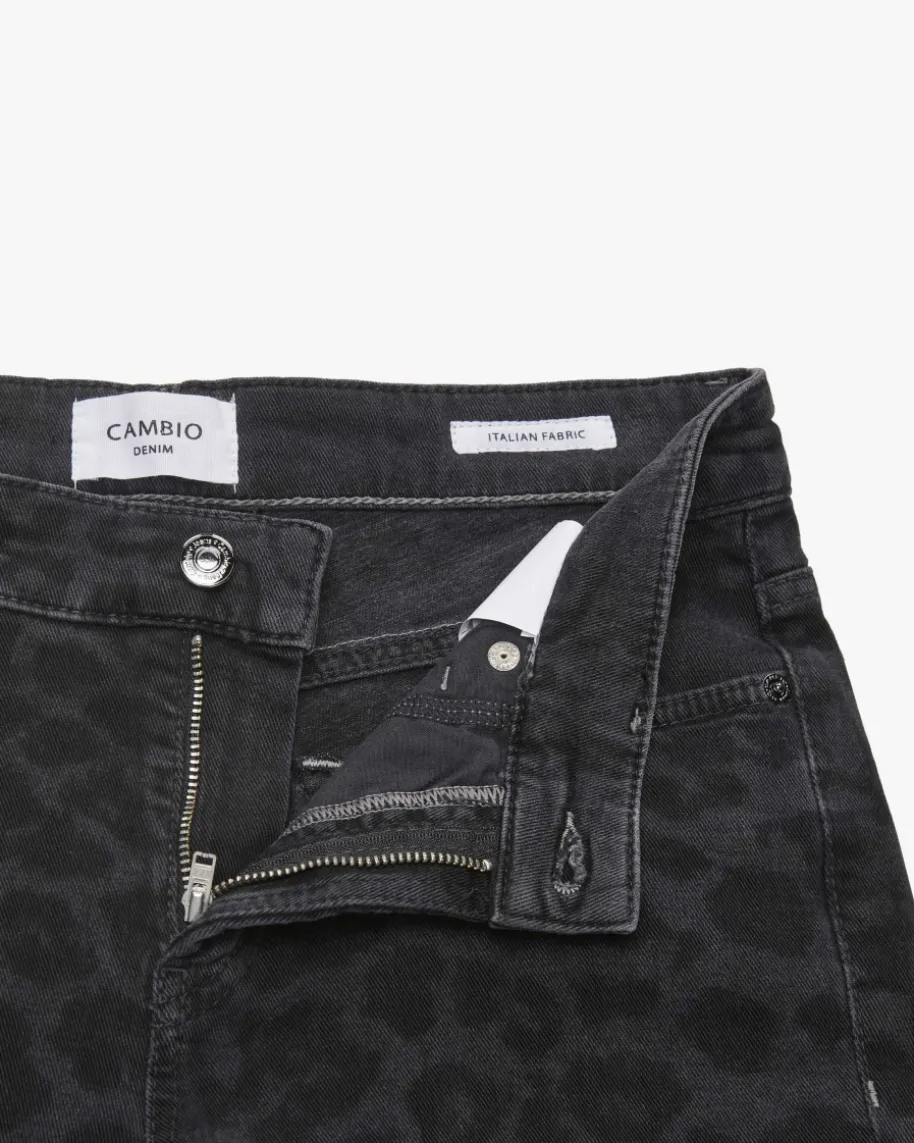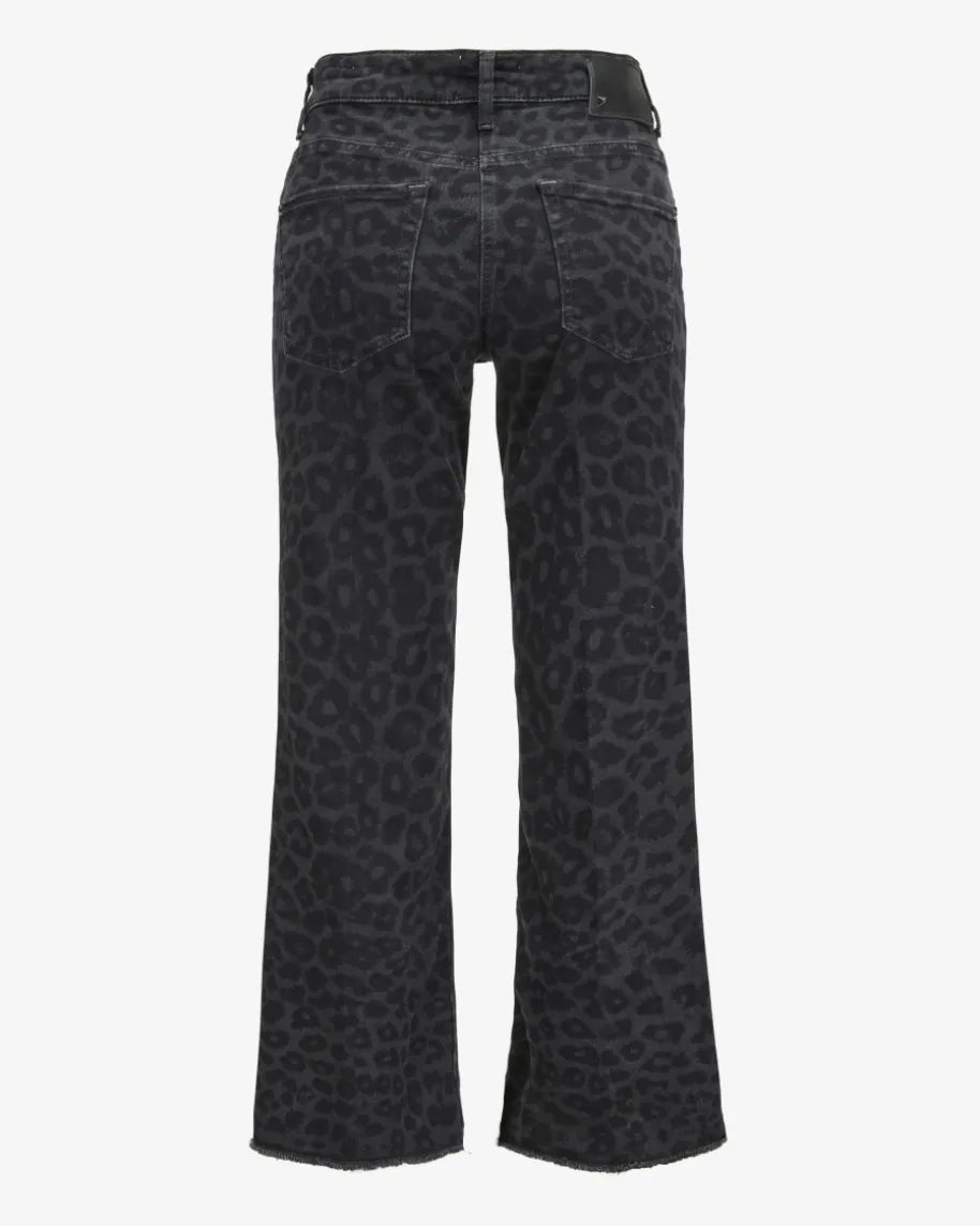 Francesca 7/8-Jeans für Damen von Cambio in Schwarz. Während das Modell dank derelastischen, leichten Material-Qualität einen hohen Tragekomfort verspricht,kreiert die Baby Bootcut-Silhouette in Kombination mit dem ausgefransten Saumund tonalem Leoparden-Muster einen modischen Denim-Favoriten.