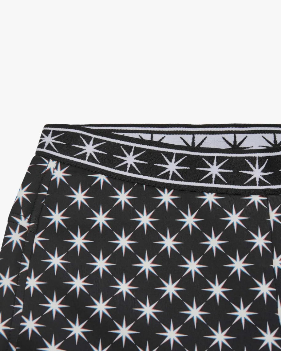 Frederica 7/8-Hose Feminine Fit für Damen von Marc Cain in Schwarz und Weiß. Diedeutsche Marke steht für selbstbewusste, feminine Looks. Auch dieses Modellpräsentiert sich mit dezent ausgestellter Passform und elastischem Bund mitStern-Design, während die elastische Qualität in Neopren-Optik für angenehmenTragekomfort sorgt. Das modische Allover-Muster rundet den sportiven Look mitwinterlichem Touch gekonnt ab.
