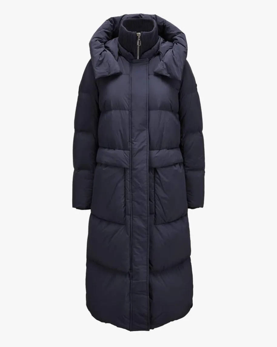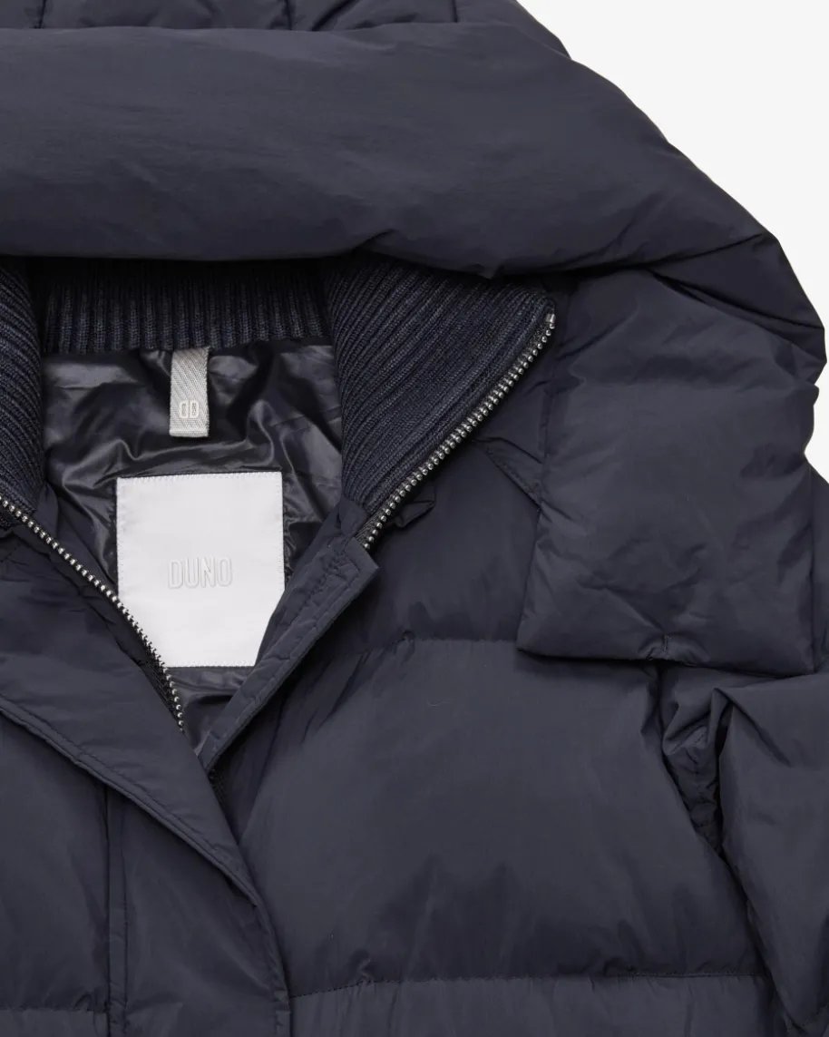 Fully Aprica Daunenmantel für Damen von Duno in Navy. Technische Stoffe treffenauf minimalistisches Design – modische Performancejacken mit stilvollem City-Charakter. Das matt changierende Modell präsentiert sich dank markantemRippstrick-Kragen, Saum mit Gummizügen sowie großen Taschen in legerer sowiefunktionaler Aufmachung, während die hochwertige Daunen-Feder-Füllung optimaleWärmeisolierung verspricht.