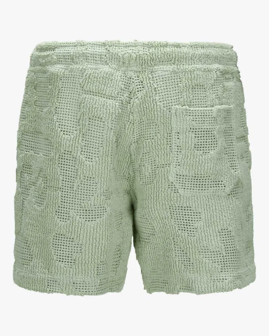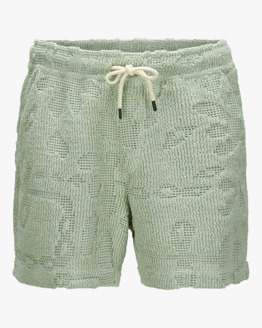 Galbanum Cuba Crochet Shorts für Herren von OAS in Mint. Während der legereSchnitt zusammen mit dem elastischen Bund für angenehmen Tragekomfort sorgt,begeistert das Modell zudem mit abstraktem Crochet-Design in semi-transparenterOptik.