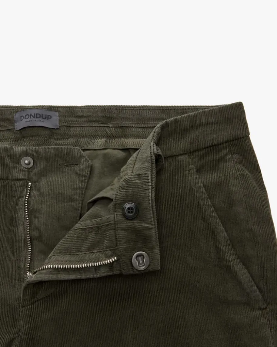 Gaubert Cordhose für Herren von Dondup in Dunkeloliv. Das legere Modell auselastischem Baumwoll-Cord präsentiert sich in schlichter Aufmachung mit softemTouch, während klassische Details einen zeitlosen Begleiter für vielseitigeCasual-Looks kreieren.