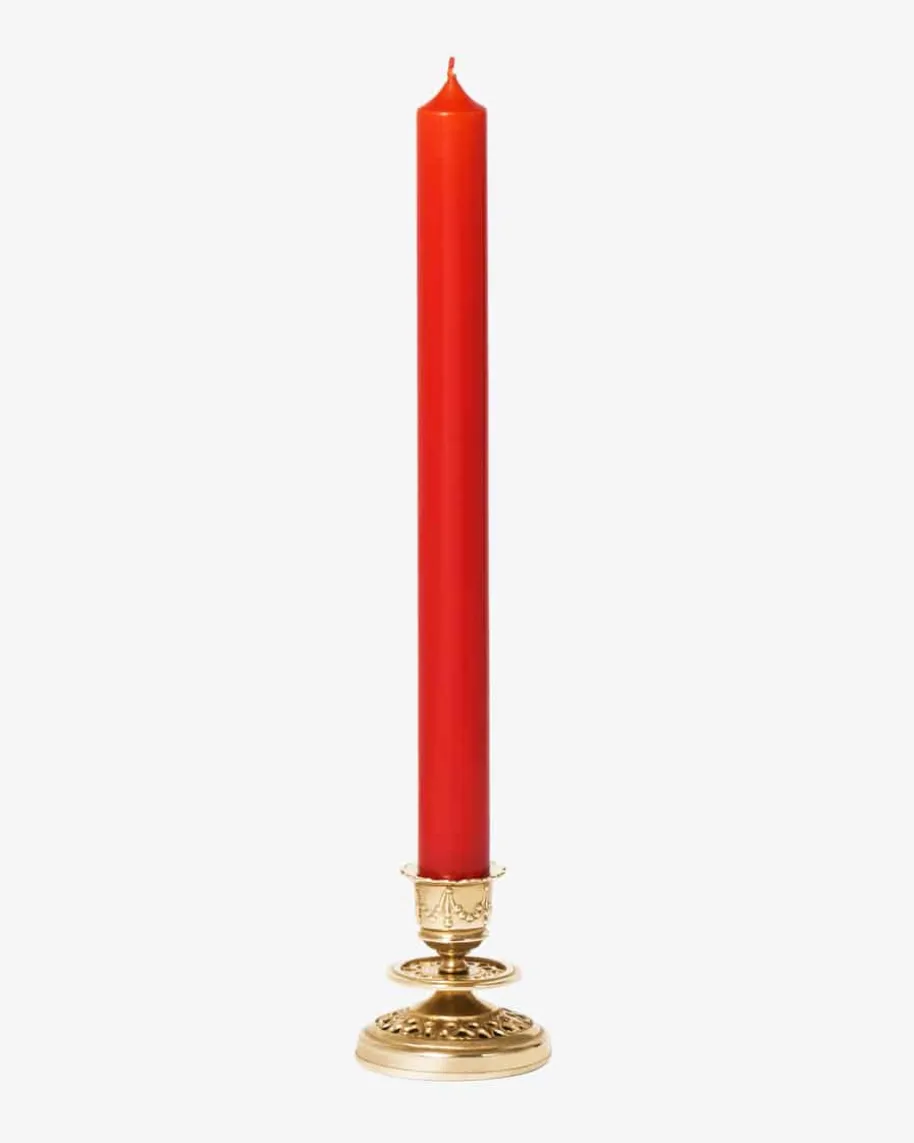 Gemeißelter Kerzenständer von Trudon. Das goldfarbene Modell präsentiert sich inTrudon charakteristischster Aufmachung mit schlanker Silhouette sowie romantischtraditionellem Design und eignet sich ideal für Royale-Spitzkerzen.