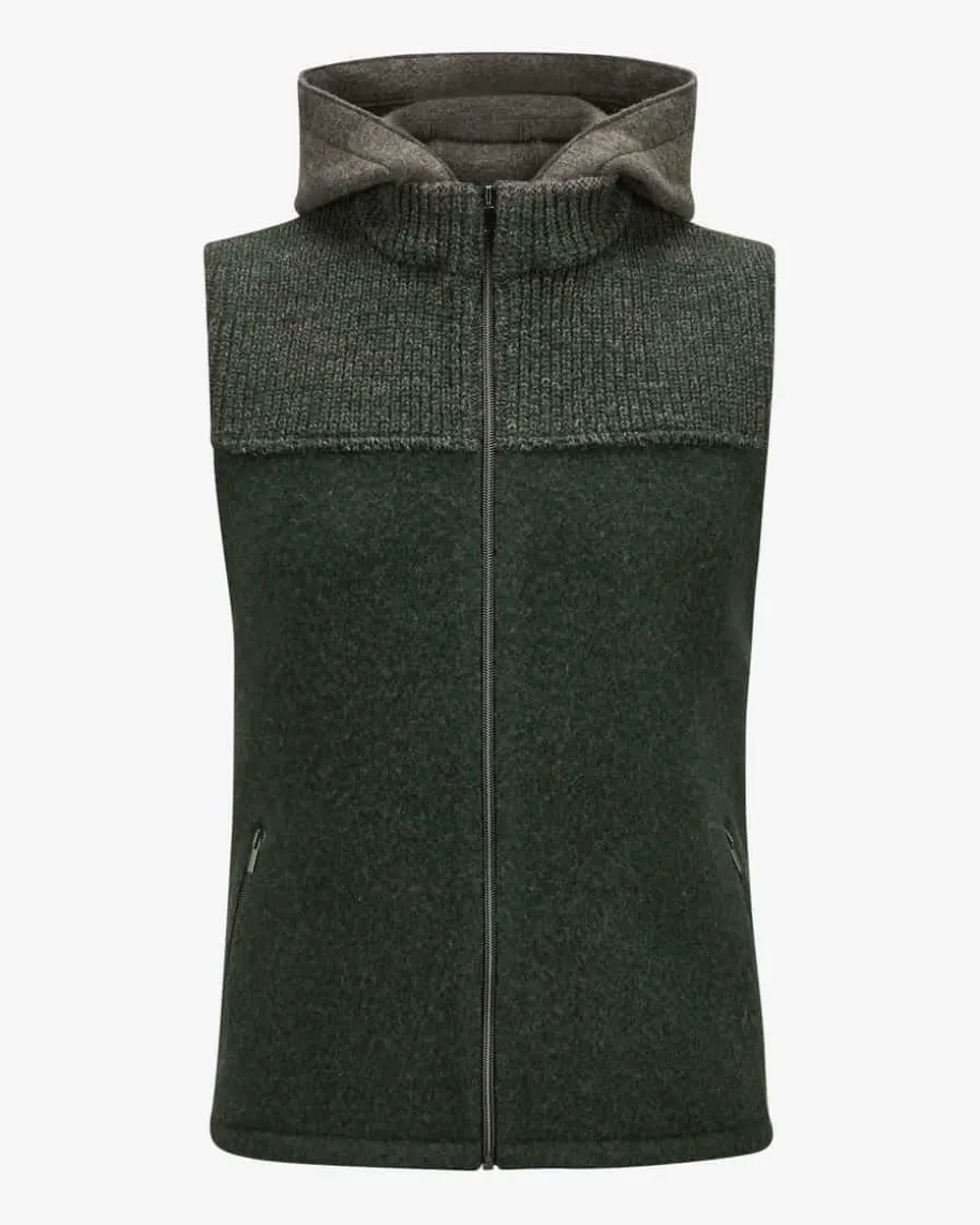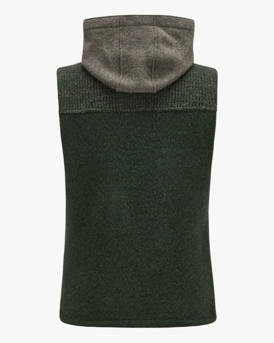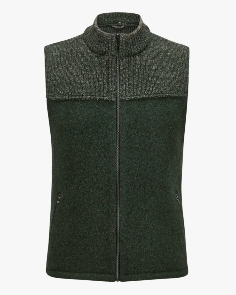 Georg Trachtenweste für Herren von Stapf in Dunkelgrün und Grau. Das Modellpunktet dank der Kombination aus klassischer Woll-Verarbeitung und Rippstrick-Qualität in modischer Aufmachung, während klassische Details ein traditionellesGesamtbild kreieren.