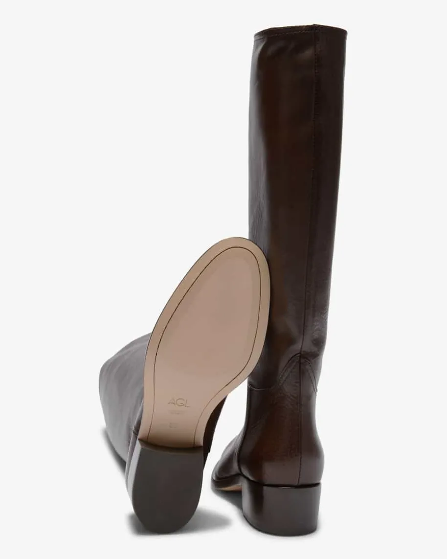 Georgia Stiefel für Damen von AGL in Dunkelbraun. Ein klassischer Begleiter imEquestrian-Look – Mit diesem Glattleder-Modell hat das italienische Label eineneleganten sowie schlichten Reiterstiefel für vielseitigeKombinationsmöglichkeiten geschaffen.