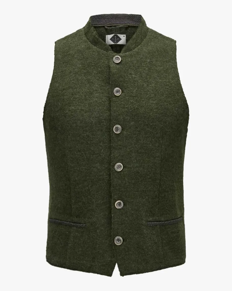 Gernot Trachtenweste für Herren von Stapf in Moosgrün. Gefertigt aushochwertiger Loden-Qualität, überzeugt das Modell in traditioneller Aufmachung,während die Knopfleiste sowie Paspelierungen den rustikalen Trachten-Lookgekonnt vollenden.